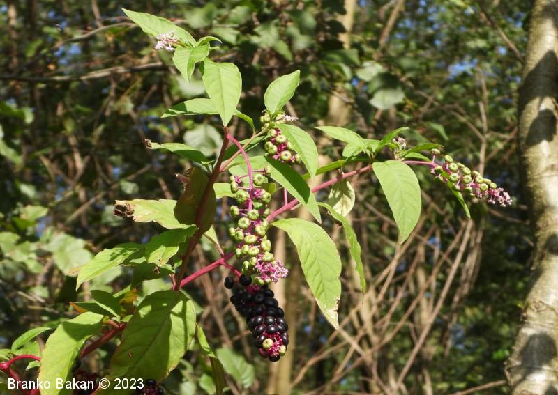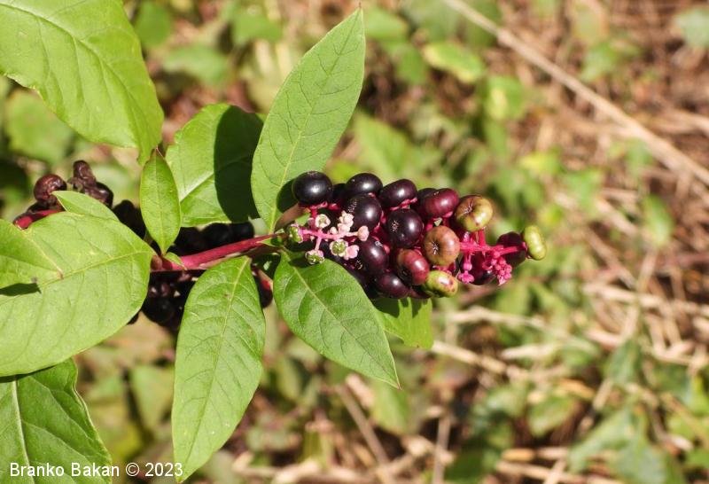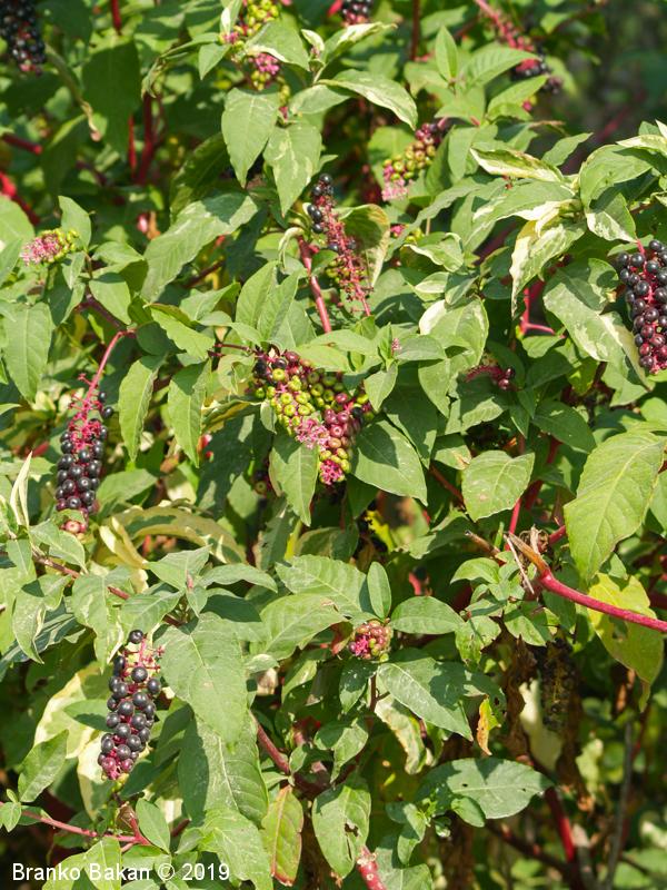 Posebnosti: rastlina je zelo strupena! Vrsta izvira iz Severne Amerike in je v Evropo zanešena verjetno kot okrasna rastlina, ki se je (ponekod tudi invazivno) razširila v naravi. V preteklosti so njene plodove ponekod uporabljali kot barvilo, občasno jo še vedno uporabljajo v lokalni kuhinji (z večkratnim prekuhavanjem naj bi uničili toksine). S plodovi se prehranjujejo nekatere ptice in sesalci, ki so odporne na strupe. Značilnica močno dognojenih tal.