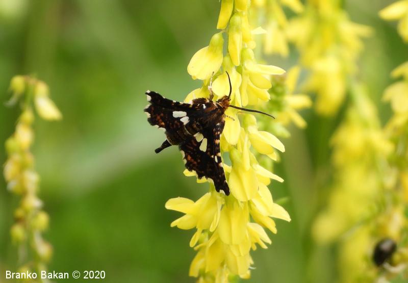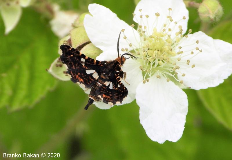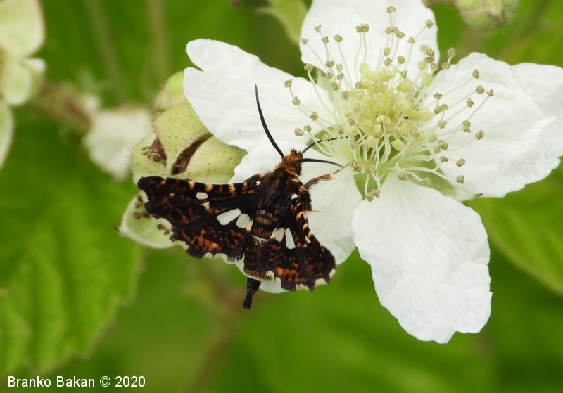 Obnašanje in razvoj: predstavljena vrsta je edini predstavnik te družine, ki se pojavlja v Evropi. Odrasli letajo v dveh generacijah od maja do avgusta in jih na hitro lahko zamenjamo za kako travniško veščo (Crambidae) ali veščeca (Sphingidae). Gosenice so rumenkasto ali olivnozeleno prosojne, posejane s črnimi pikami in z veliko, temno glavo. Hranijo se v glavnem z listi navadnega srobota (Clematis vitalba), črnega bezga (Sambucus nigra) in navadnega repinca (Arctium lappa).