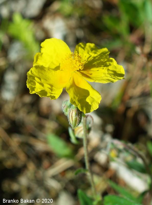 Opis: razrasla, kipeča do pokončna polgrmičasta trajnica. Steblo okroglo, v spodnjem delu pogosto oleseni, v zgornjem delu poraslo s prileglimi laski. Listi so nasprotno razvrščeni, enostavni, suličasti do jajčasti, celorobi, sedeči, z majhnima prilistoma, po zgornji strani porasli z enostavnimi in vilastimi dlakami, po spodnji strani z zvezdastimi dlakami. Cvetovi so zlatorumeni, precej veliki (1.5-3 cm), v sredini temnejši, združeni v rahlocvetna, grozdasta socvetja, sprva kimasti, ob razcvetu pokončni. Čaša je sestavljena iz zunanjih čašnih listov, ki so ozkočrtalasti in manjši od jajčastih, notranjih čašnih listov, ki so 5-9 mm veliki, odebeljeno žilnati (med žilami večinoma gostodlakavi, na žilah s kratkimi, do 1 mm velikimi dlakami). Plod je večsemenska glavica, ki se odpira z loputami.