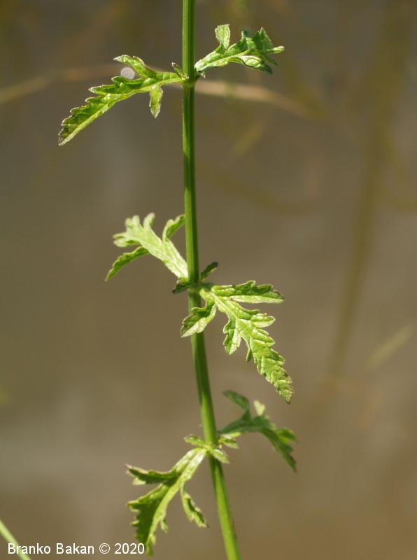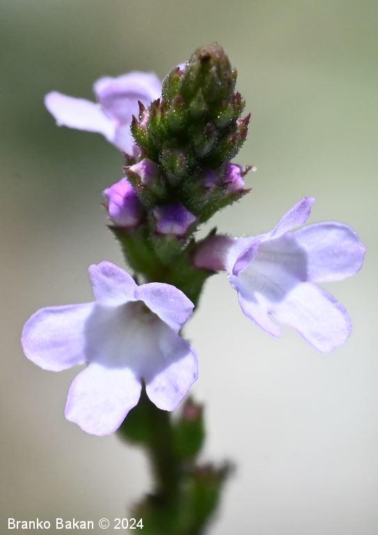 Opis: pokončna, šibasto razrasla enoletnica ali večletnica s krepko korenino. Steblo je tanko, večinoma v zgornjem delu s stranskimi, lokastimi poganjki, nekoliko robato, gladko. Listi so pernato krpati do nacepljeni, pecljati, nasprotno razvrščeni. Cvetovi so precej drobni, somerni, cevastozvonasti, bledovijoličasti, združeni v močno podaljšana, klasasta socvetja, vsak cvet z drobnim podpornim listom. Prašniki 4, dva daljša nadrašča spodnja dva. Plodnica je 4-predalasta, ob zrelosti razpade na 4 manjše plodiče.