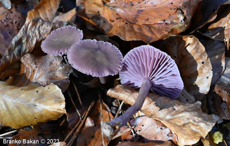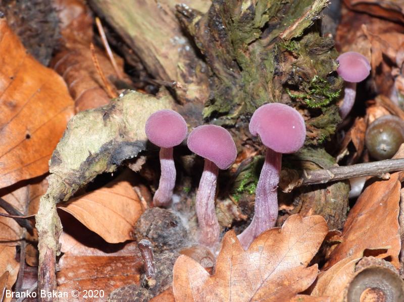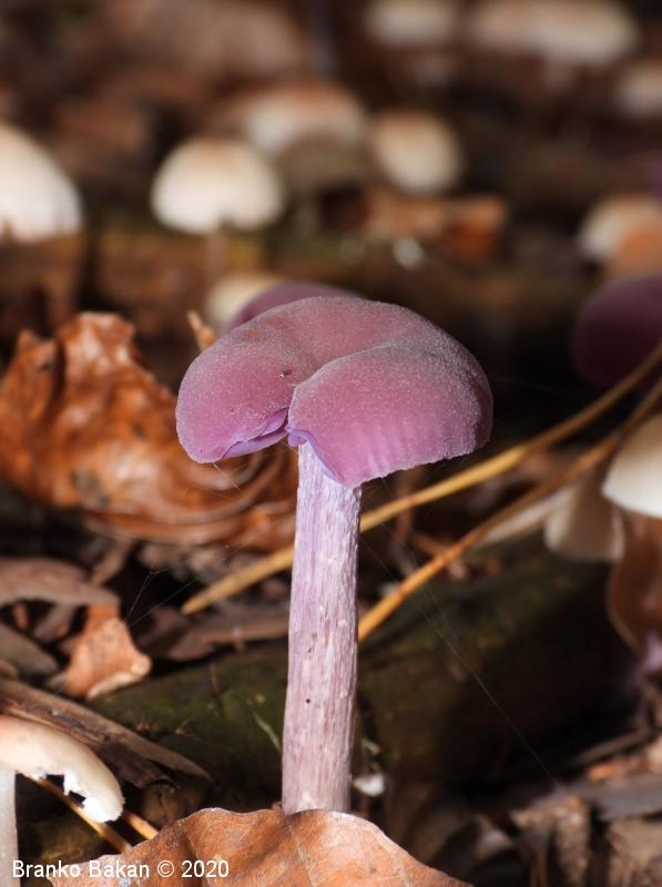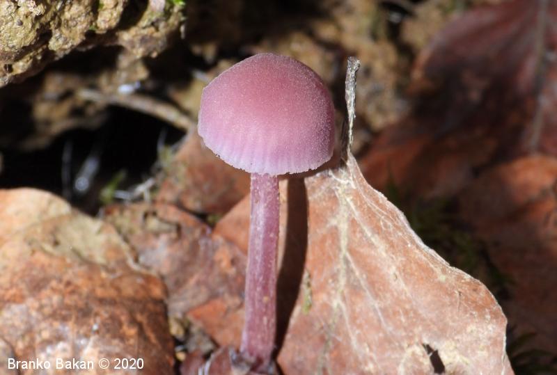 Podobne vrste: vijoličasta koprenka (Cortinarius violaceus) - dvobarvna bledivka (Laccaria bicolor) - prstenolistna razcepljenka (lnocybe geophylla var. violacea) - redkvičasta čeladica (Mycena pura).
