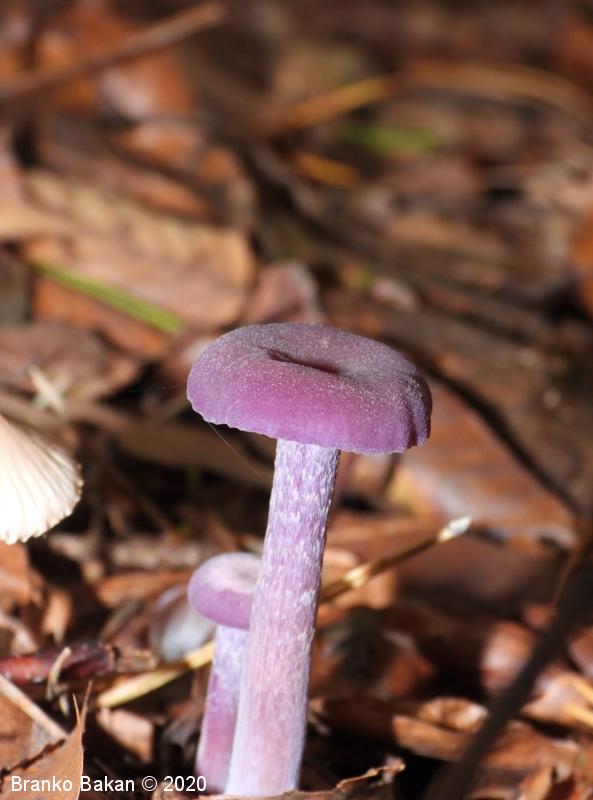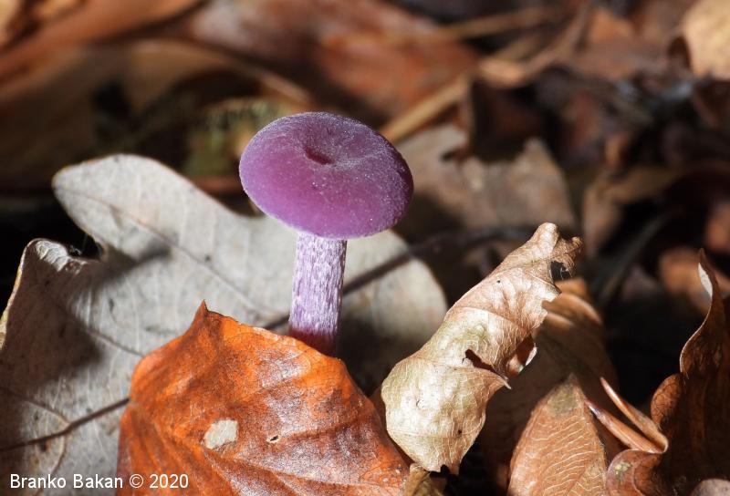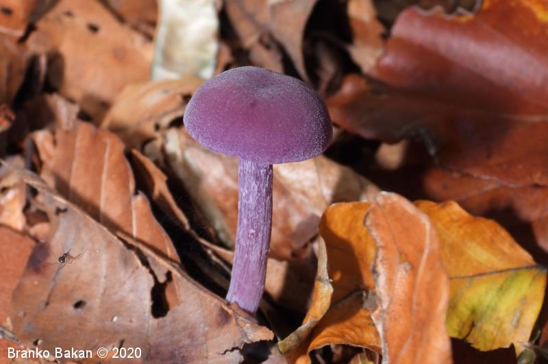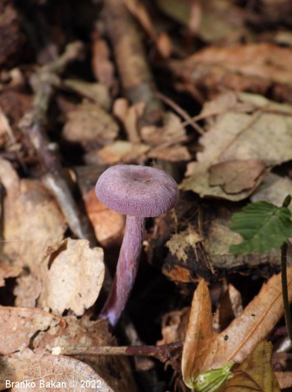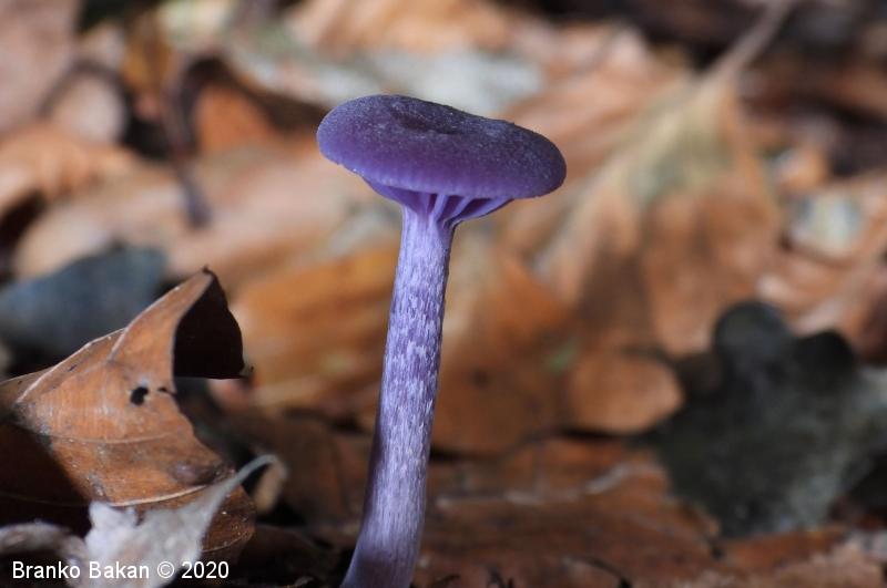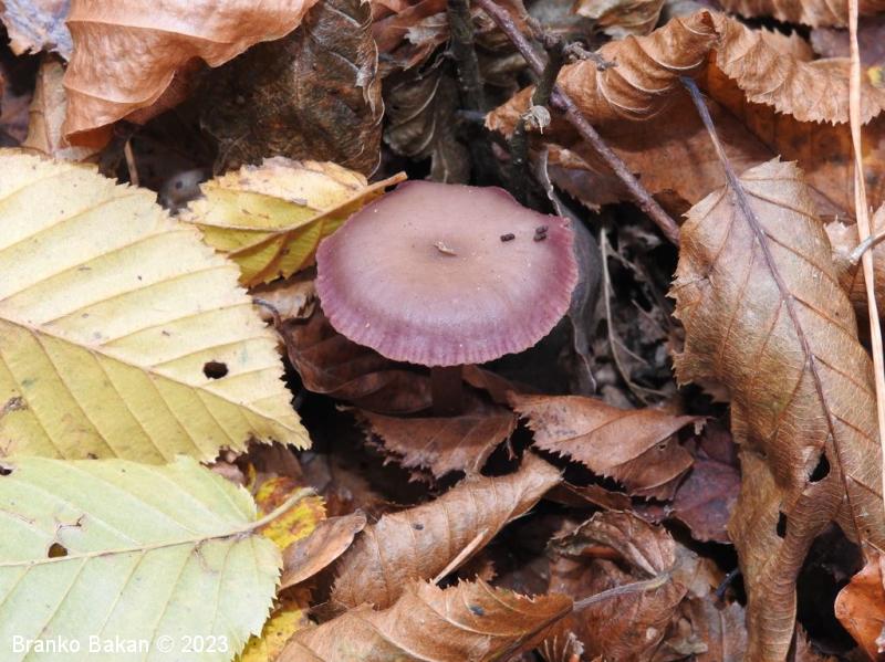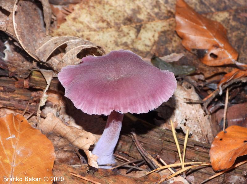 Opis: zaradi vijoličaste obarvanost je dokaj prepoznavna gliva. Klobuk je sprva dežnikasto zaobljen (meduzast), nato razprt, na sredini udrt, gladek, vijoličast, s starostjo zbledi in posivi. Spodnja stran klobuka je porasla z vijoličastimi lističi, ki so med seboj dokaj razmaknjeni, togi in tvorijo trosovnico. Bet je vitek, pecljat, pogosto ukrivljen, vijoličast, večinoma luskast. Meso je vijoličasto, nekoliko žilavo in prijetnega vonja.