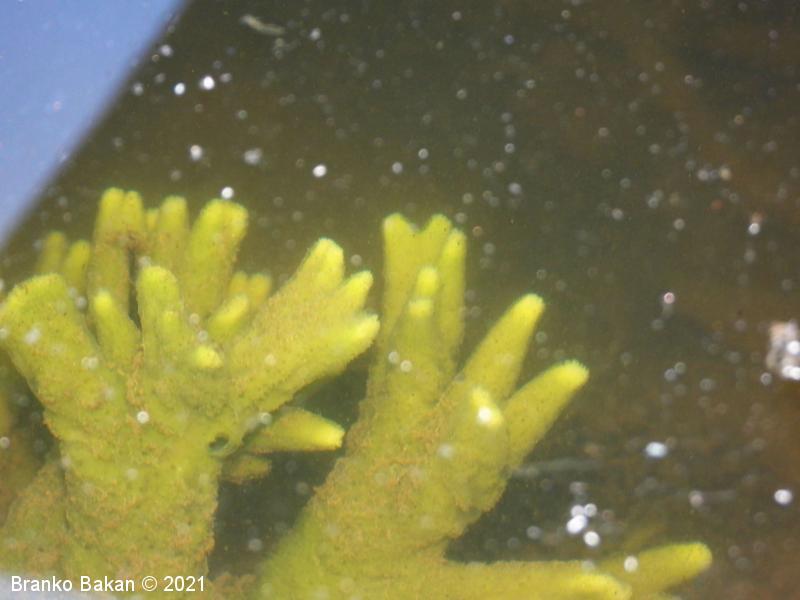Opis: razrast je kopučasta ali prstasta (razvejana), predvsem po potopljenih vejah in lesenih elementih, kot so stebri, koli in podobno. "Telo" je amorfne oblike, z veliko prsasto oblikovanimi izrastki, ki so lahko precej dolgi, vilasto razvejani, topi ali koničasti. "Telo" ima zelo neprijeten vonj in je večinoma zeleno, rumenkasto ali sivkasto, luknjičasto, spužvasto na otip. Spužvasto tkivo je polno drobnih kamric, katerih stene tvorijo bičkaste celice, ki z nenehnim gibanjem bička proizvajajo lahen vodni tok. Med kamricami se nahajajo številne kremenčaste iglice (makrosklere), ki tvorijo strukturni element in so med seboj povezane z vezivom - sponginom. Površina je prekrita z drobnimi, prosto ležečimi mikrosklerami. Notranjost spužve je prepletena s številnimi, različno velikimi kanalčki in sifoni, ki služijo za dovajanje vode s hranili in odvajanje odpadne vode.