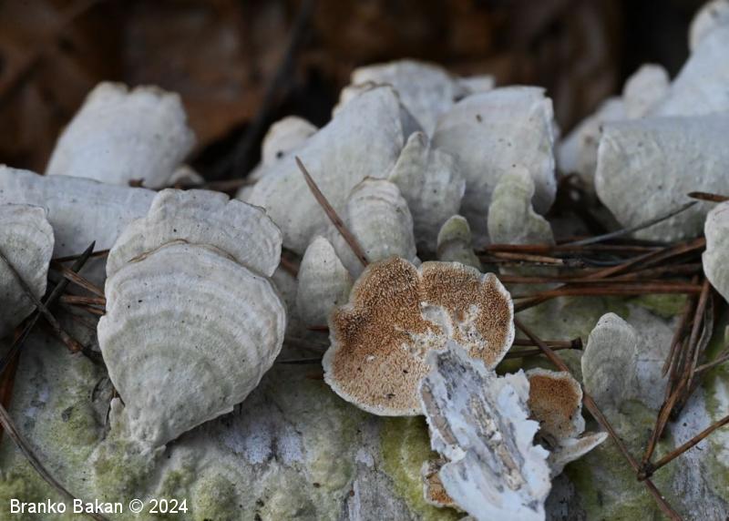 Podobne vrste: rjavovijolična apnenka (Trichaptum fuscoviolaceum) - jelkova apnenka (Trichaptum abietinum) - tribarvna zvitocevka (Daedaleopsis tricolor).