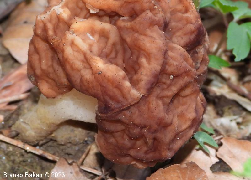 Opis: klobuk trosnjaka je močno naguban, spominja na možgane, je nepravilne oblike, pogosto močno deformiran, lisičjerjave barve, redkeje tudi temnorjave. Meso je belo, rahlo neprijetnega vonja. Bet je nekoliko spužvast, do 3 cm visok, nepravilen, različnih velikosti in oblik, včasih je valjast, običajno votel, bolj ali manj gladek, belkast, okrast, ali pa rahlo rdečkast. Trosovnica se nahaja na zunanji površini klobuka.