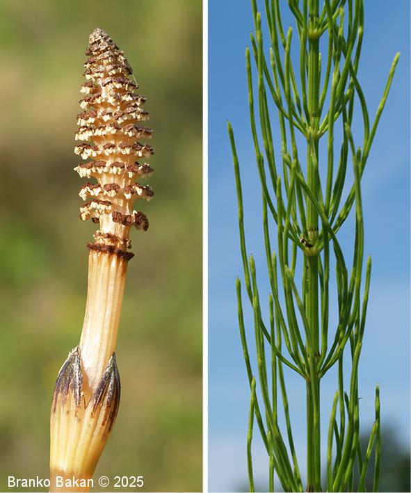 3 LISIČJAKOVCI IN PRAPROTNICE: rastlina ne tvori cvetov in semen ter plodov, razmnožuje se s sporami (trosi); listi so večinoma veliki, pernato sestavljeni [L], po spodnji strani s trosišči ALI so listi šilasti, med seboj zrasli v listno nožnico, poganjki so enostavni ali vretenčasto razrasli, na vrhu večinoma z enim trosnim klasom [D] ALI so listi drobni, šilasti ali luskasti, posamični, poganjki so pogosto vilasto razrasli in na vrhu z enim ali več trosnimi klasi;