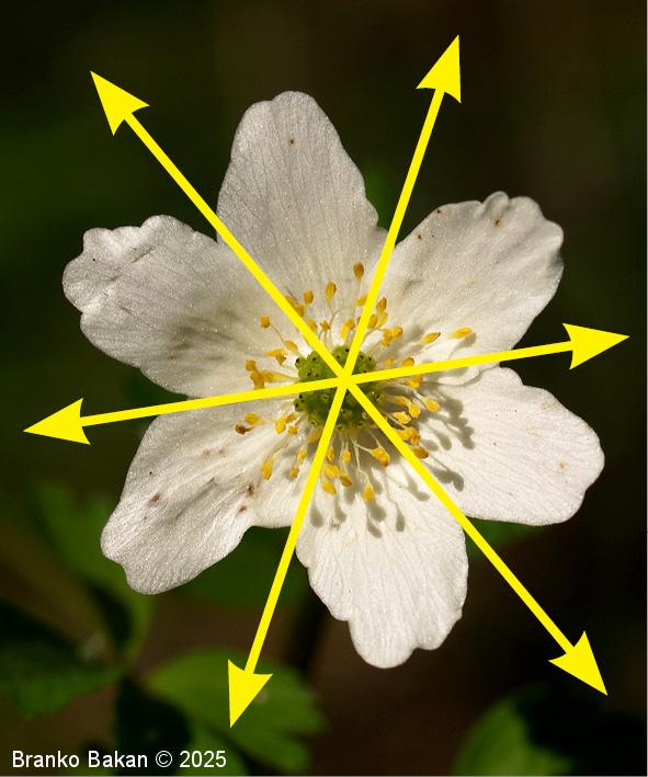 7a RASTLINE Z ZVEZDASTIMI CVETOVI: cvetovi so bolj ali manj zvezdasti (aktinomorfni oz. radiarni - skozi cvet lahko potegnemo več simetral, ki predelijo cvet v več zrcalno podobnih delov), večinoma razprostrti, venčni listi so prosti [L] ali med seboj v celoti ali vsaj delno zrasli [D]
