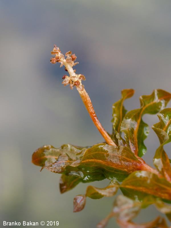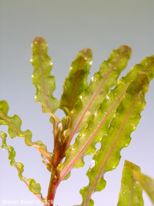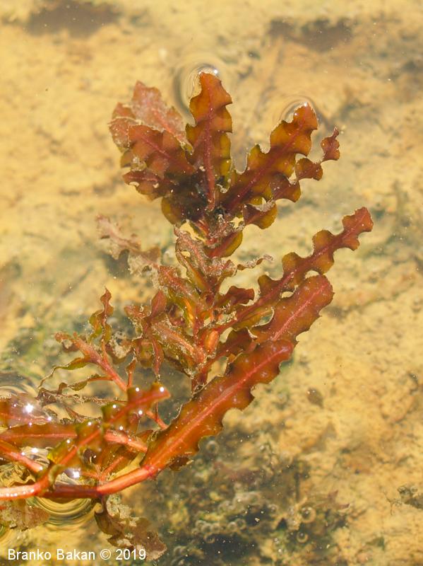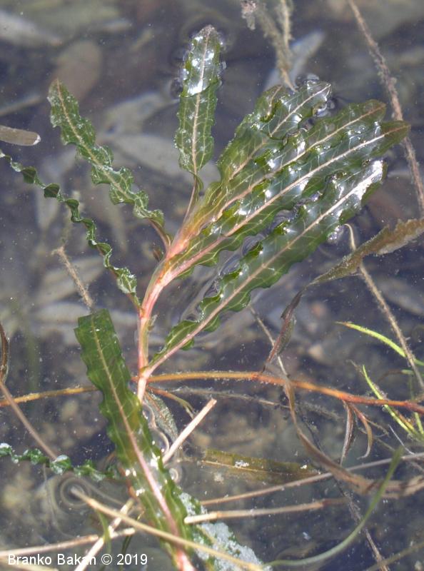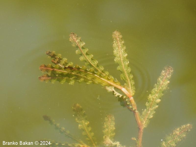 Opis: ukoreninjena vodna trajnica s plazečo koreniko in 4-oglatim steblom. Listi so večinoma potopljeni ali plavajoči, premenjalno in tudi nasprotno razvrščeni, črtalasti ali ozkosuličasti, sedeči, po robu valoviti, drobno nazobčani, "kodrasti", prosojni, rjavi ali zeleni, z izrazito osrednjo žilo. Cvetovi so drobni, zvezdasti, 4-števni, zgoščeni v dolgopecljato, klasasto, ovršno ali obstransko socvetje, rjavkasti ali zelenkasti. Plod je oreškast, po trebušni strani krilat, nenakomerno nazobčan, pri dnu s priveskom.