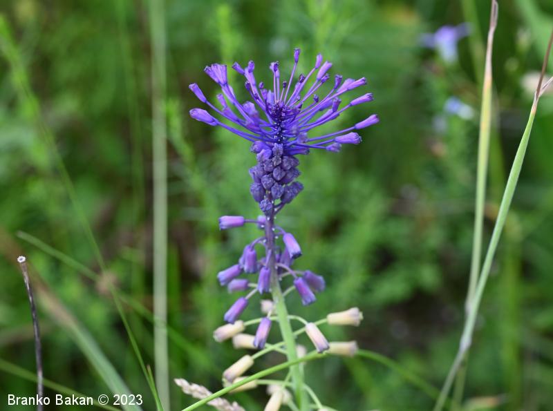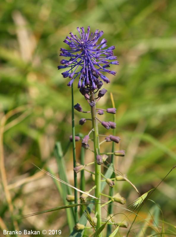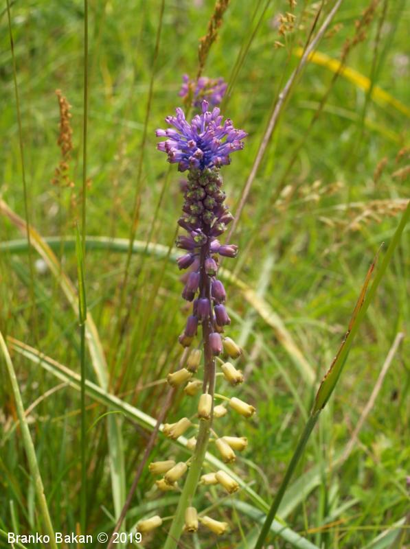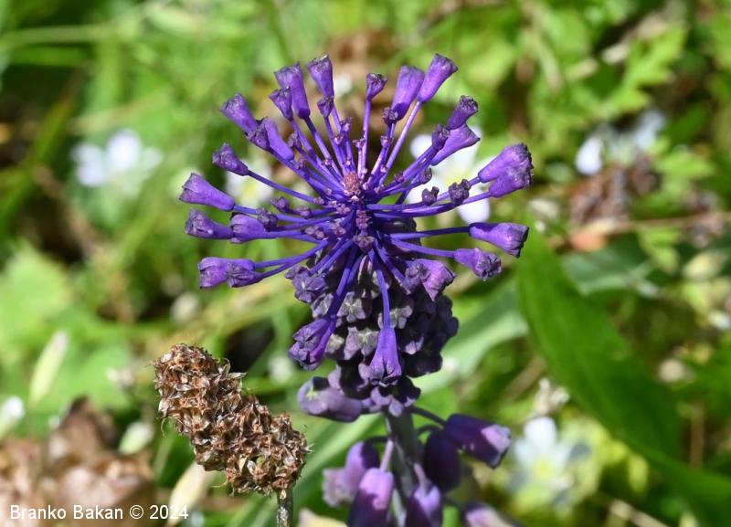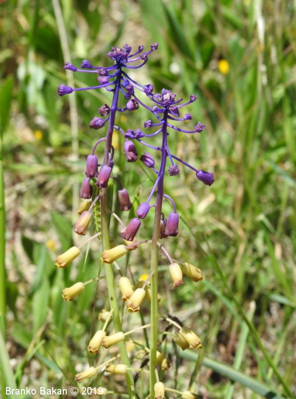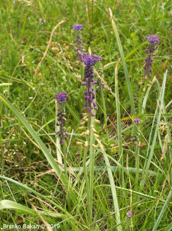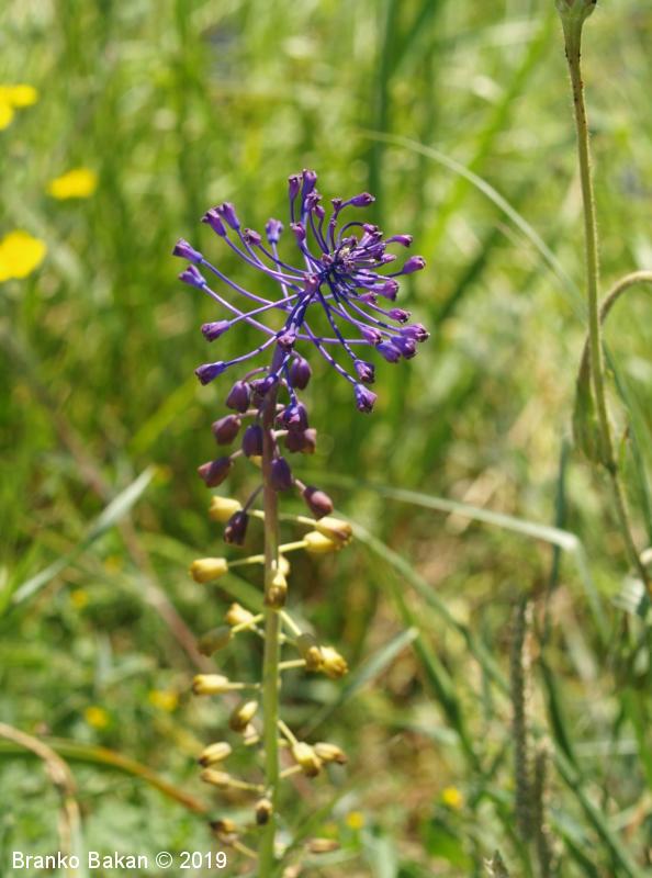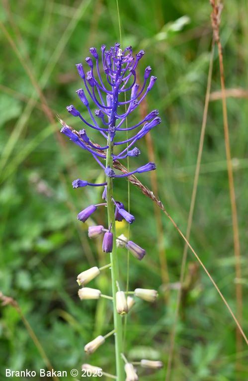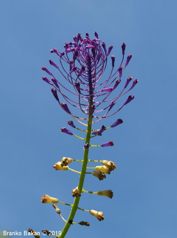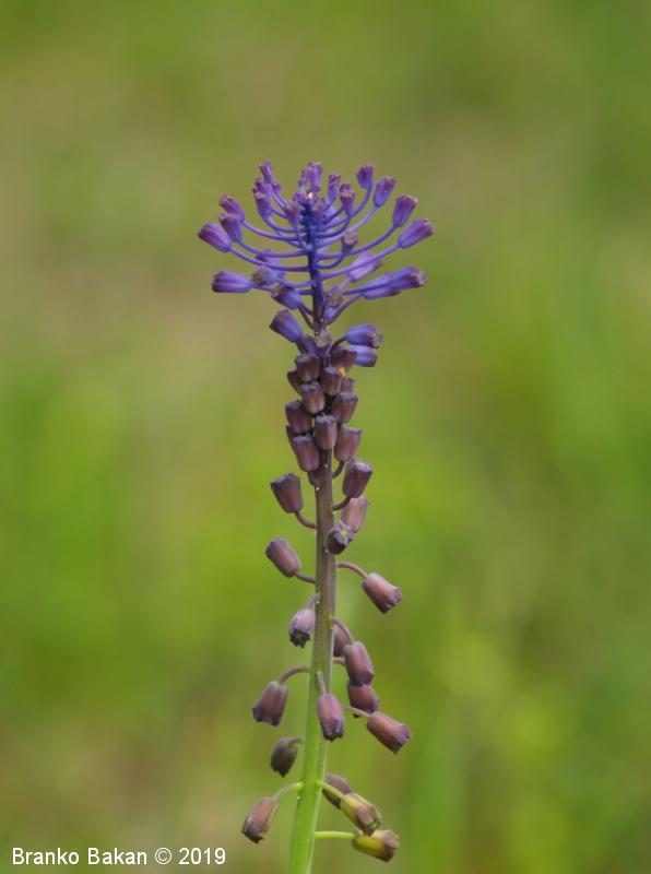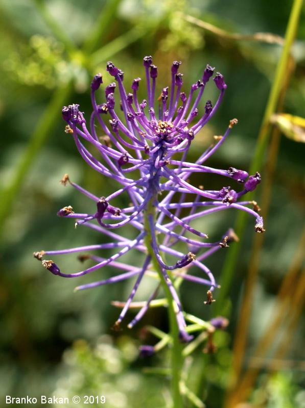 Opis: trajnica s čebulico. Vsi listi pritlični, črtalasti, ploski ali žlebazsto zganjeni, nekoliko mesnati, precej dolgi, mlahavi, na vrhu podaljšani v kapucasto konico. Cvetovi zgoščeni v gostocvetno, grozdasto podaljšano ovršno socvetje, dveh tipov. Na vrhu socvetja se nahajajo šopi sterilnih, dolgopecljatih, valjastih, modrovijoličastih cvetov, pod njimi se nahajajo številni sivkastorjavi ali umazanorumeni, dolgopecljati, vrčasti, plodni cvetovi. Pelodna zrna so rjavočrna. Plod je trikotna glavica.