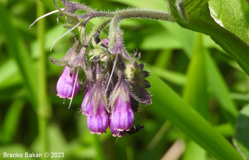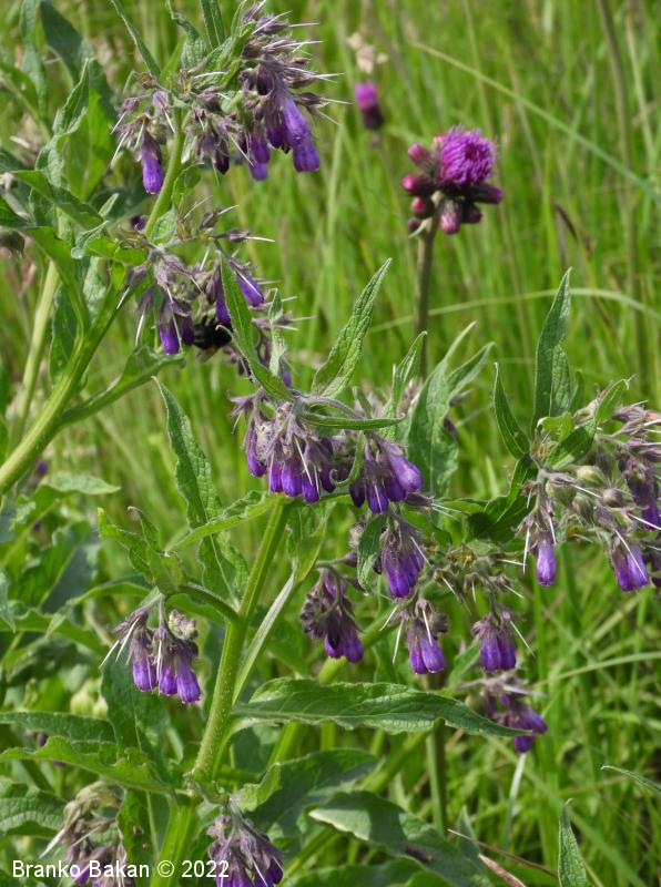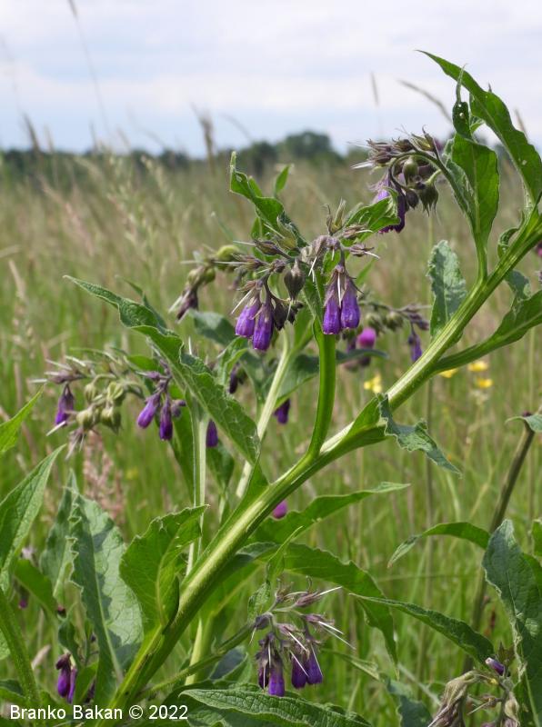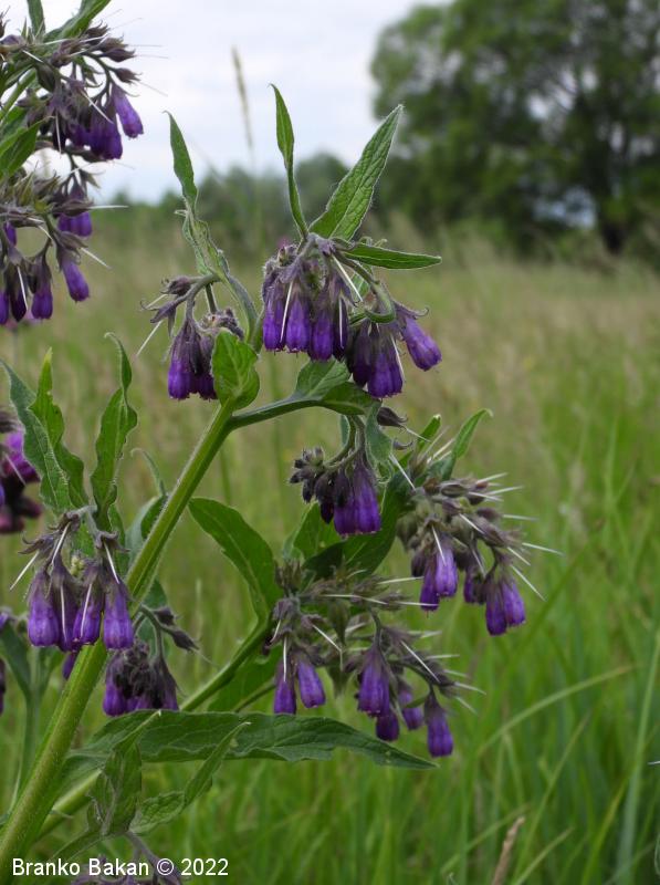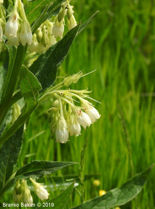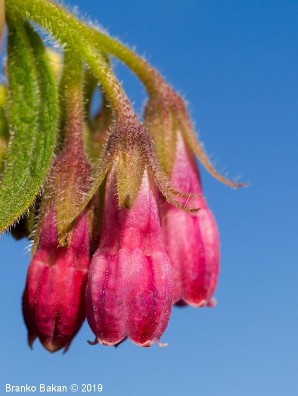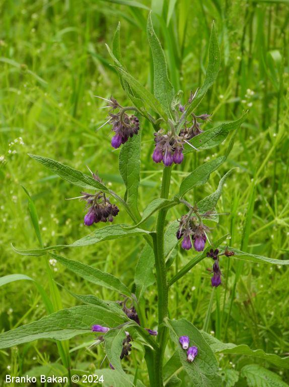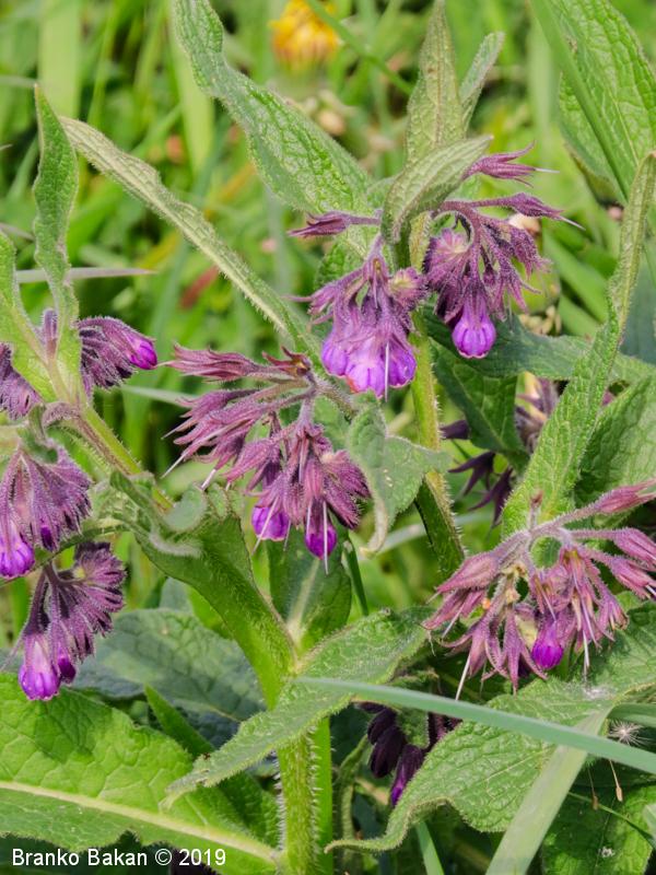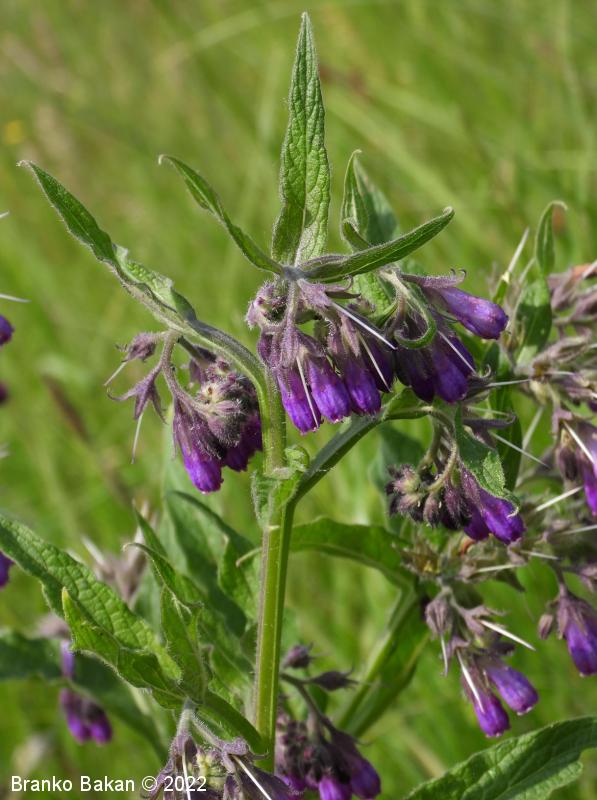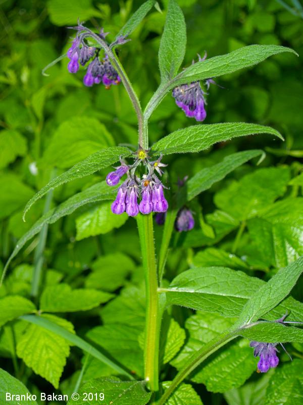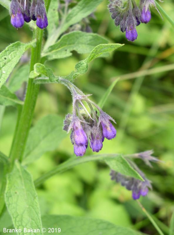 Opis: gosto srhkodlakava, redkeje skoraj gola (podvrsta uliginosum) trajnica, vsaj v zgornjem delu razrasla, z močno, neodebeljeno koreniko. Steblo krilato (podvrsta officinalis), sicer okroglo, večinoma gosto poraslo z enostavnimi ščetinami. Pritlični listi dolgopecljati, jajčasti, zeleni. Stebelni listi podolgasti ali suličasti, sedeči, večinoma se z listnim robom na dolgo iztezajo po steblu (podvrsta officinale) ali se iztezajo zelo kratko ali sploh ne (podvrsti bohemicum in uliginosum). Cvetovi cevasti, združeni v ovršna ali obstranska socvetja (vijaček), sprva škrlatnordeči, kasneje modrovijolični ali tudi rumenkastobeli (podvrsta bohemicum). Venčni listi med seboj zrasli v cev, s kratkimi zobci pri vrhu, 5-števni, v notranjosti s krogom petih goltnih lusk. Plodnica je nadrasla, ob zrelosti razpade na 4 plodiče.