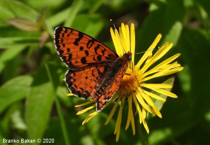 Podobne vrste: nekatere vrste bisernikov (Heliconiinae) - lučnikov pisanček (Melitaea trivia).