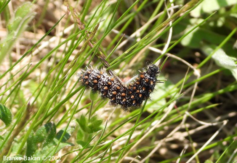 Obnašanje in razvoj: navadno leta od maja do avgusta, v eni podaljšani generaciji ali tudi v dveh. Zelo rad poseda po cvetočih rastlinah, kjer samci in tudi samice velikokrat z razpiranjem kril privabljajo partnerje. Gosenice so črne z belimi pikami, porasle z velikimi, oranžno obarvanimi, koničastimi bradavicami ter črnimi ščetinicami. Prehranjujejo se z različnimi rastlinami. Buba je navzdol viseča, bela, črno lisasta in z rumenimi vzorci.