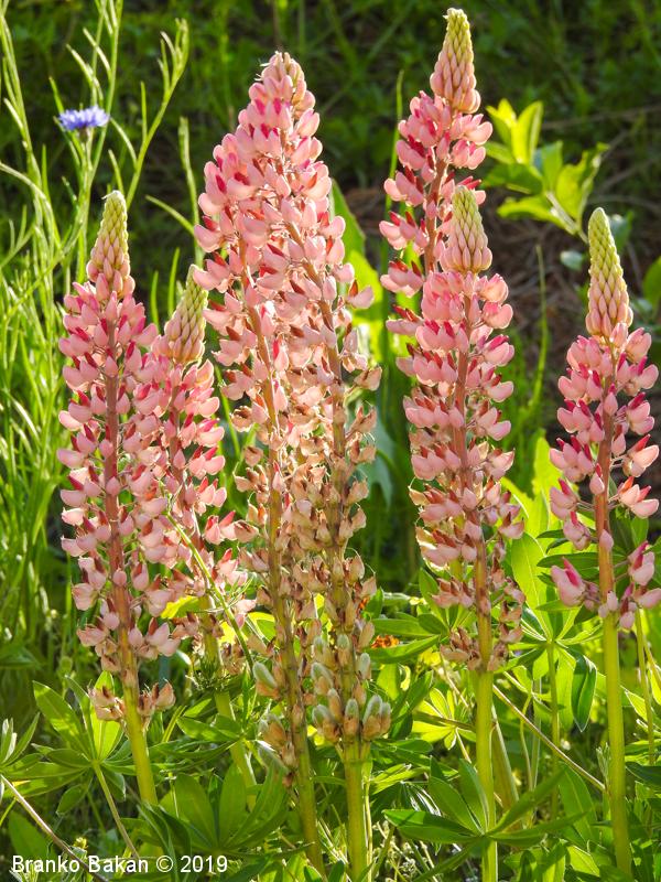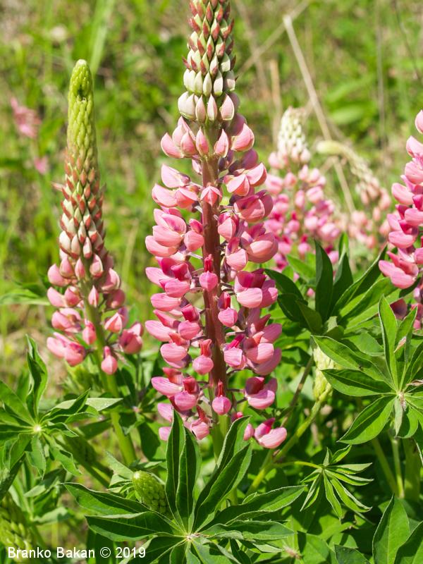 Opis: pokončna, navidez grmičasto razrasla trajnica. Listi dolgopecljati, dlanasto sestavljeni v 10 do 15 ozkosuličastih lističev, premenjalno razvrščeni. Cvetovi združeni v gostocvetno, precej veliko, klasasto socvetje, najpogosteje rožnati, škrlatni ali modri z belim jadrom, pa tudi rumeni, oranžni in rdečkasti (različni kultivarji). Plod (strok) gosto dlakav, vodoravno štrleč, ob zrelosti potemni.