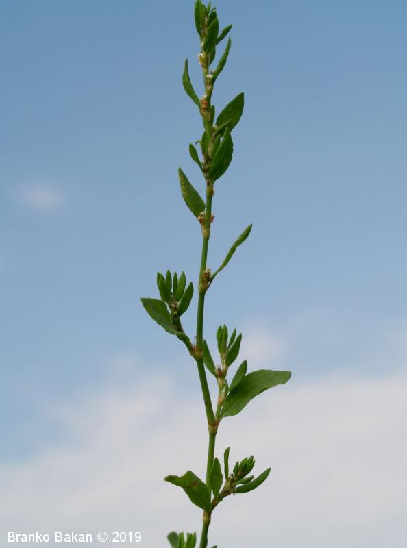 Opis: šopasto razrasla enoletnica z večinoma kipečim ali pokončnim, redkeje poleglim steblom, ki je gosto olistano. Vmesni stebelni členki (internodiji) so sorazmerno dolgi, osrednji so ponavadi daljši od zgornjih in spodnjih. Listi so jajčasti ali suličasti, sedeči ali pecljati, na vrhu priostreni, neenako veliki (osrednji listi glavnih poganjkov so znatno večji od listov na stranskih poganjkih), od 1.5 do 5 cm veliki, temno- ali sinjezeleni, celorobi. Cvetovi so združeni v malocvetna, zalistna socvetja, zelo drobni. Listi cvetnega odevala (perigon) so večinoma rdečkasti, rožnati ali redkeje tudi beli, z osrednjo zeleno liso, med seboj največ do 1/3 zrasli, zvezdasto razprti, 5-števni. Plod je temnorjav orešek, ob zrelosti se odmrli cvetni listi tesno prilegajo ob njega in ga pri vrhu delno zakrivajo.