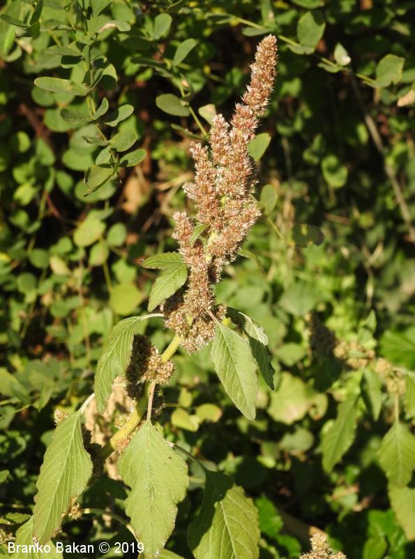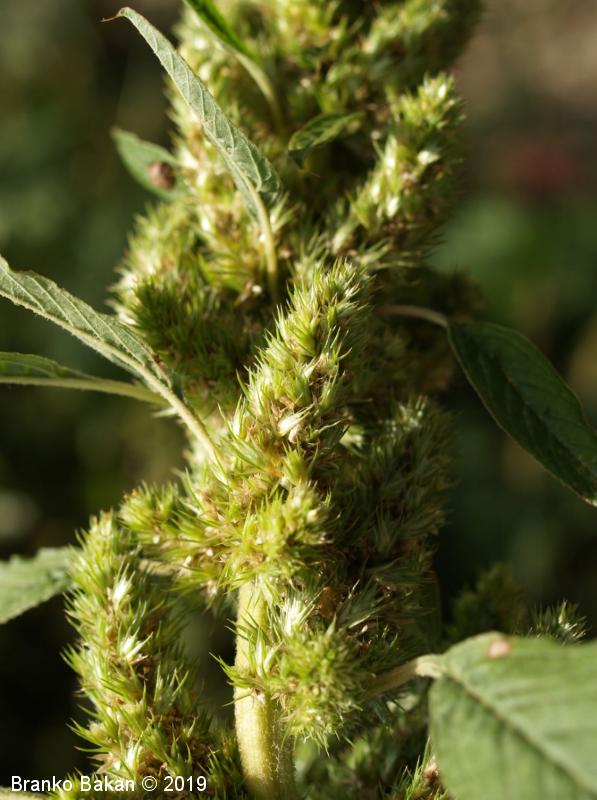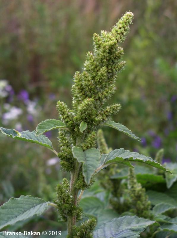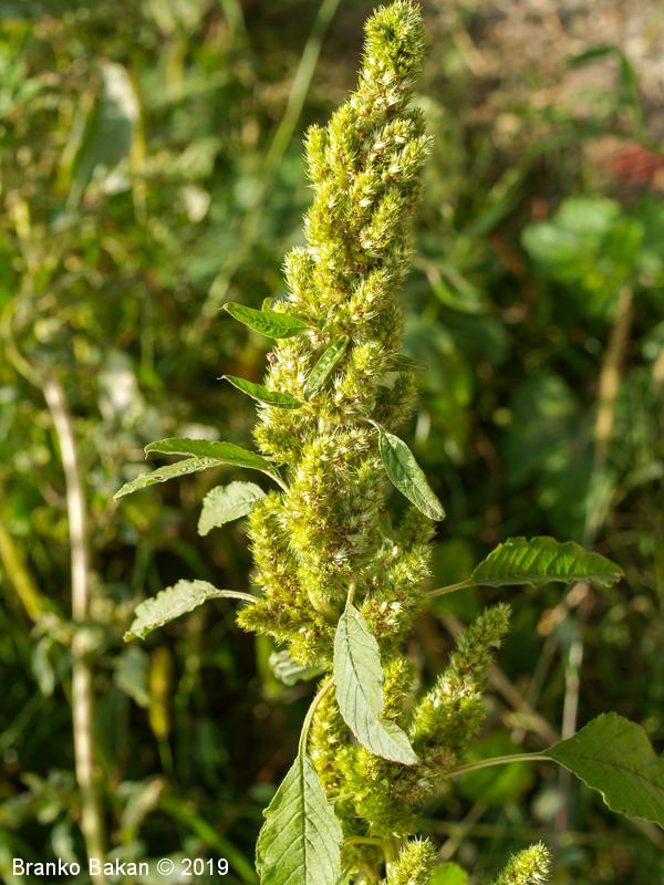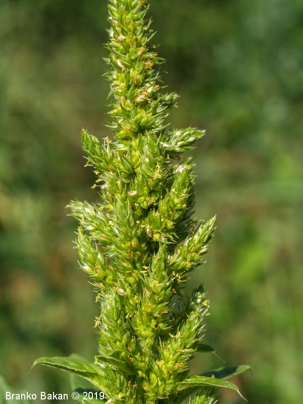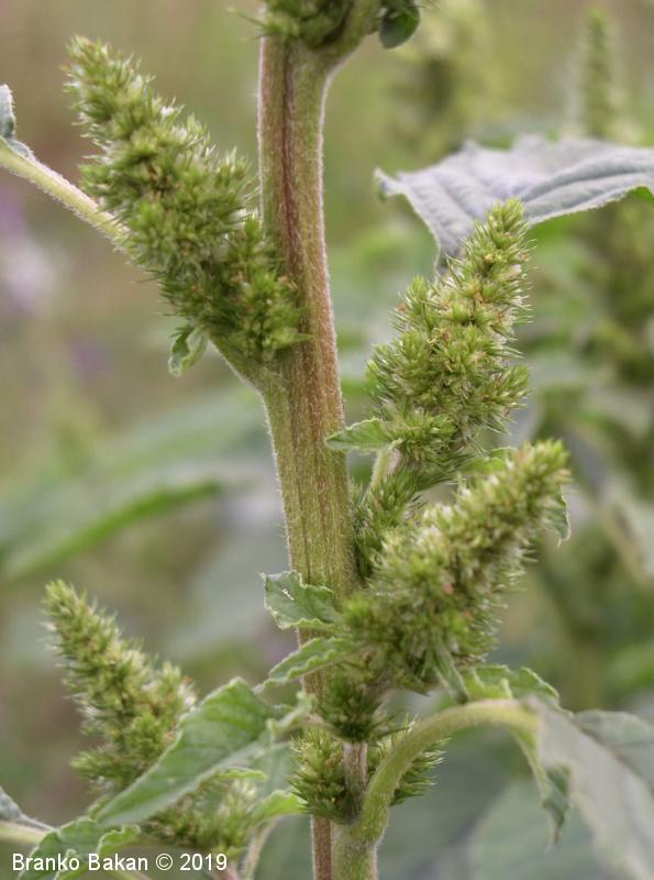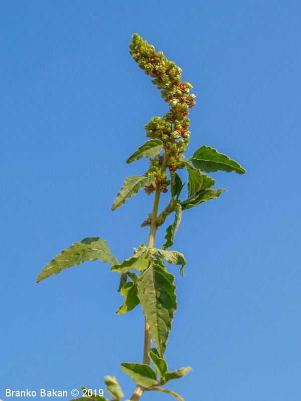 Opis: pokončna enoletnica s kratkodlakavim, togim, gosto olistanim steblom. Listi so suličasti, jajčasti ali podolgasti, proti vrhu koničasto zoženi, dolgopecljati, premenjalno razvrščeni, celorobi. Cvetovi zelo drobni, zeleni, zgoščeni v gostocvetna, klasasto podaljšana, ovršna in obstranska socvetja, ki so zelo košata in le v spodnjem delu razmaknjena. Venčno odevalo ni razvito. Podporni listi cvetov ozko lopatičasti, na vrhu zaokroženi in ostnato koničasti, tako dolgi kot plod. Plod je glavica, ki se odpre po sredinskem šivu.