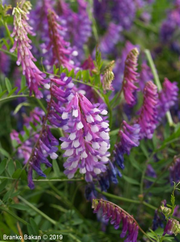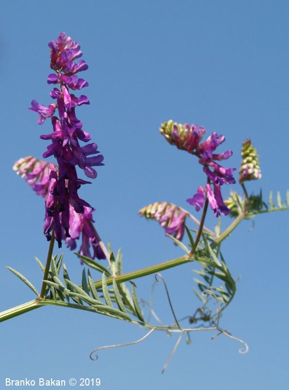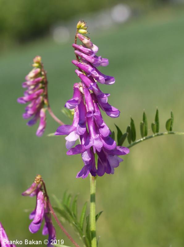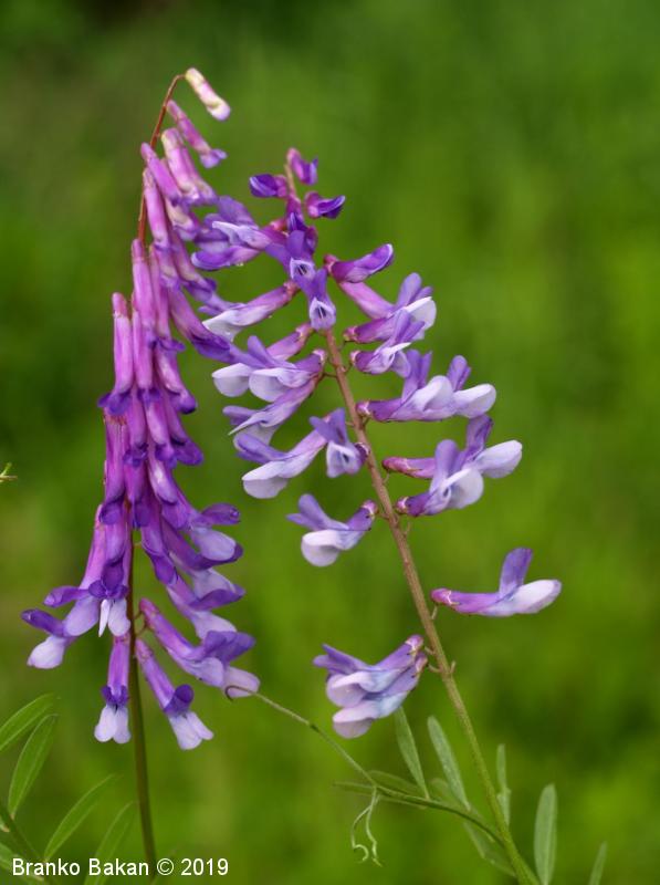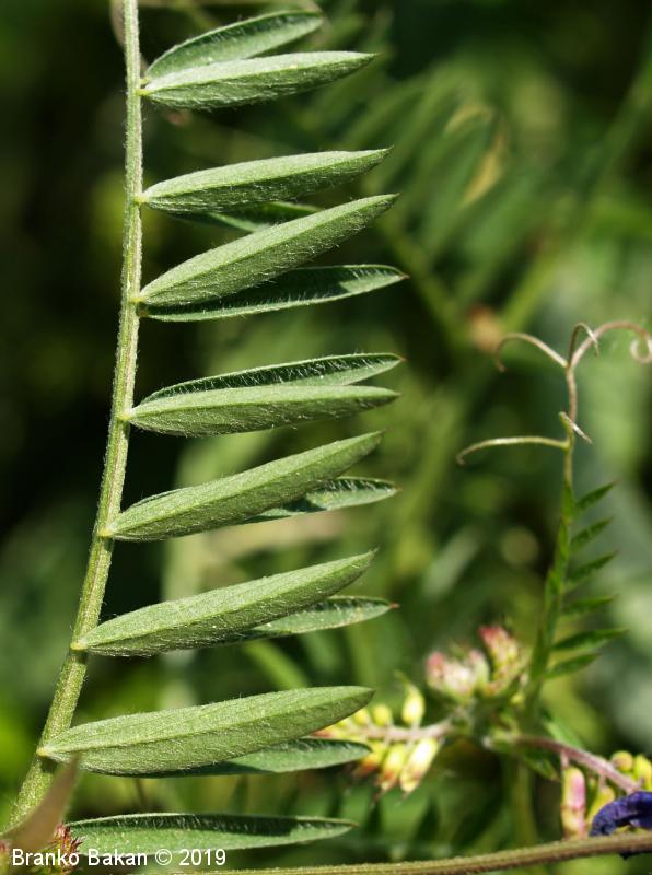 Opis: pokončna, razrasla enoletnica ali dvoletnica z golim ali prileglodlakavim steblom. Listi so sodopernato sestavljeni iz 9 do 11 parov ozkih, skoraj črtalastih, sedečih lističev, ki so na vrhu koničasti, goli ali prileglodlakavi (tedaj nekoliko bleščeči). Listi se končajo z razcepljeno vitico. Prilisti so veliki, celorobi. Cvetovi so svetlo- do modrovijoličasti, združeni v gostocvetna, dolgopecljata, zalistna socvetja, večinoma enoredno razvrščeni. Krili v vencu sta navadno belkasti, mnogo svetlejši od jadra (zato so cvetovi razločno dvobarvni!), ki ima ploščico (štrleč del jadra) krajšo od žebice (iztegnjen del jadra). Čašna cev je zvonasta, večinoma gola, čašni roglji so skoraj enako veliki, tako dolgi ali krajši od čašne cevi. Plod je gol strok.