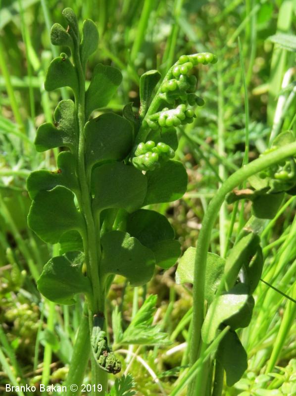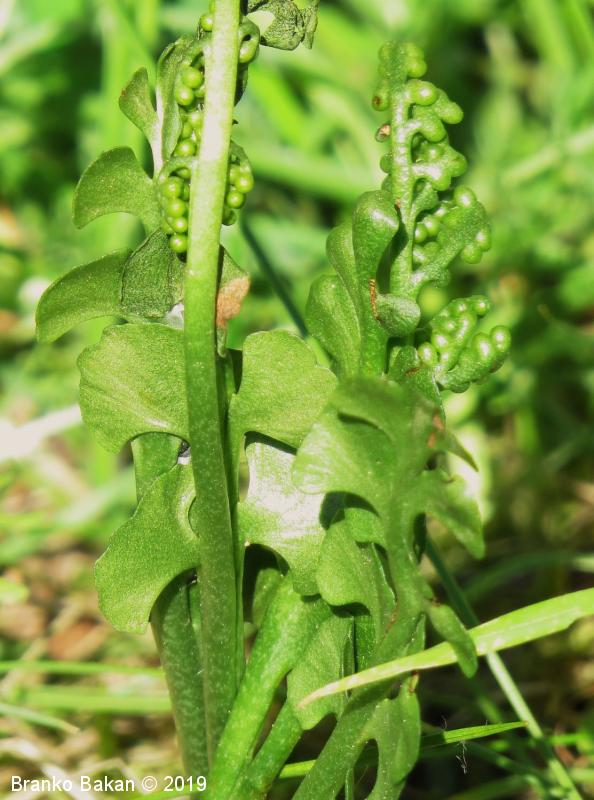 Opis: drobna trajnica, ki jo zlahka spregledamo. List je en sam, deljen v dva segmenta. Vegetativni del lista je kratkopecljat, podolgast, pernato deljen v sedeče, pahljačaste segmente, ki so zaokroženi ali plitvo izrobljeni, razločni vilasto žilnati. Sporonosni del lista je dolgopecljat, grozdasto razvejan, na njegovih vejicah so nameščeni okroglasti trosovniki (sporangiji), ki se ob zrelosti prečno razpočijo. V njih so številne spore.