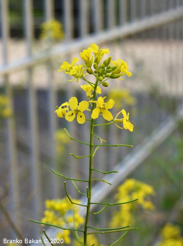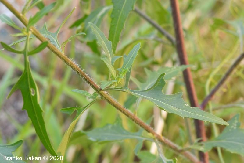 Opis: pokončna, štrlečedlakava enoletnica ali dvoletnica. Listi so pernato narezani do nacepljeni, segmenti so trikotni, grobo nazobčani, vsaj po peclju in osrednjem delu štrlečedlakavi. Cvetovi so združeni v podaljšana, grozdasta socvetja. Venčni listi so zaokroženi, daljši od čašnih listov. Plod je podolgovata glavica (lusk), pecljat, štrleč navzgor, ščetinasto dlakav.