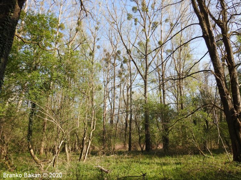 44.132 - vzhodnoevropska belovrbja s topoli (t.i. "mehkolesna loka" z belo vrbo in krhlico ter topoli, predvsem na občasno poplavljenih peščenih ali zamuljenih mestih)