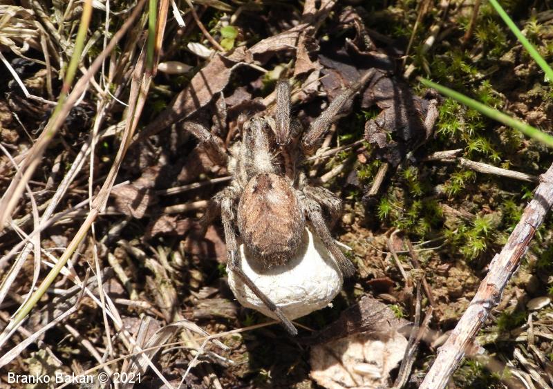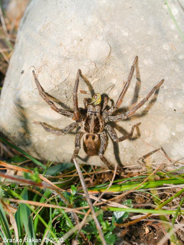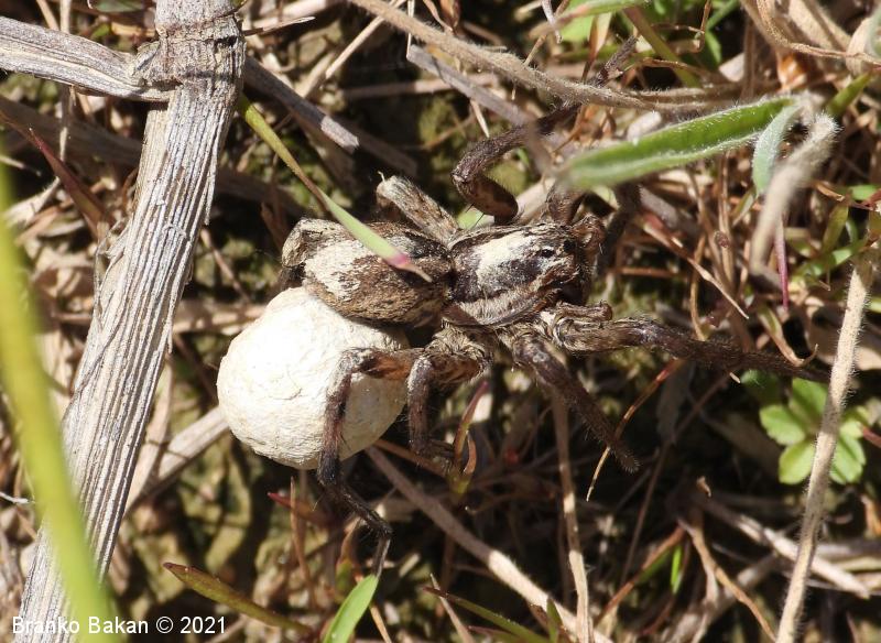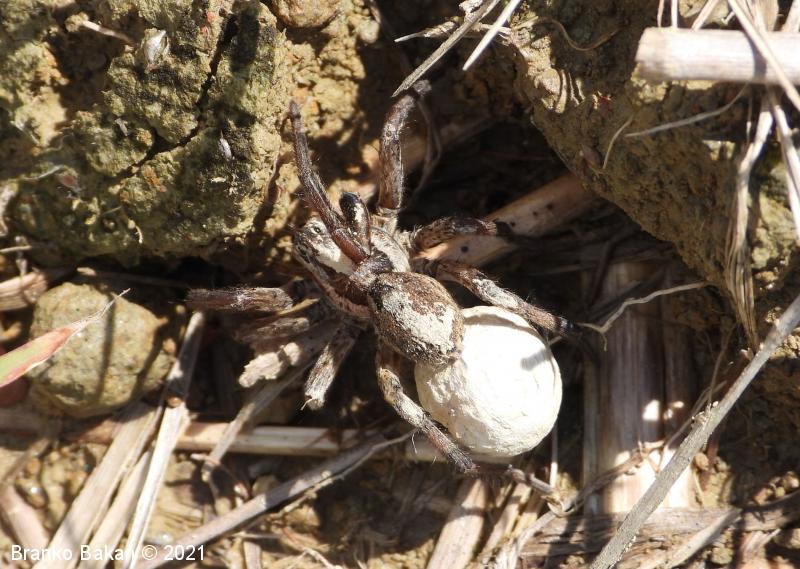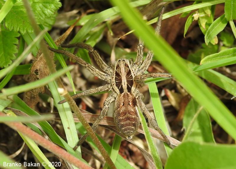 Podobne vrste: veliki sivi volkec (Alopecosa pulverulenta) - volkci iz rodu Pardosa.