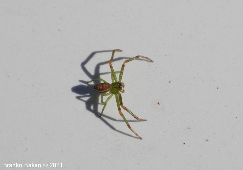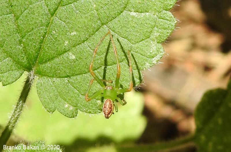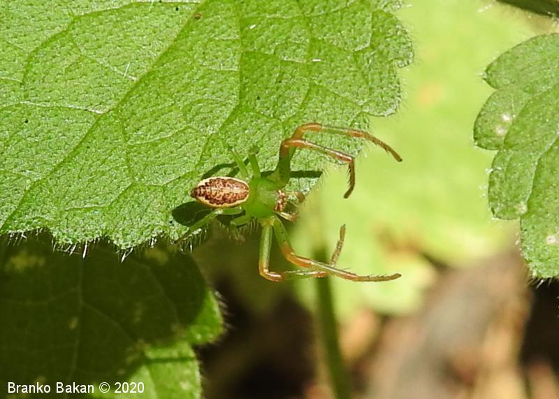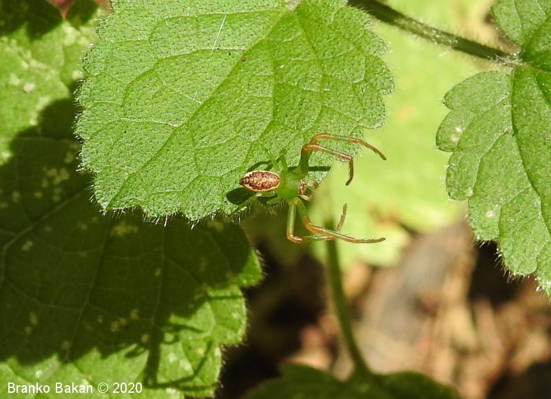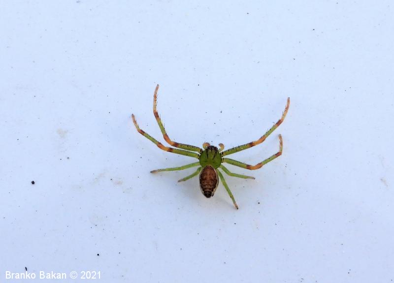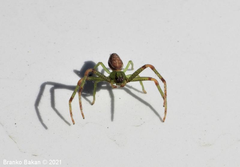 Podobne vrste: trolisi rakovičar (Ebrechtella triscupidata) - dlakavi rakovičar (Heriaeus hirtus) - zeleni lovski pajek (Micrommata virescens).