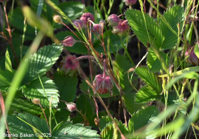 Opis: šopasto razrasla trajnica z dolgimi, nadzemnimi pritlikami (stoloni), ki se na kolencih ukoreninijo in olistajo. Steblo je nekoliko razraslo le v zgornjem delu, večinoma štrlečedlakavo, le v cvetni regiji razločno prileglodlakavo. Listi so dolgopecljati (peclji štrlečedlakavi), trojnati, segmenti jajčasti, po robu nazobčani, dlakavi. Končni zobec na listnem segmentu je manjši in ožji od sosednjih dveh zobcev. Cvetovi so združeni v malocvetno češuljasto socvetje, dolgopecljati, po odcvetu postanejo kimasti. Venčni listi so malo večji od čaše, topo koničasti. Ob zrelosti se cvetišče poveča, omeseni in rahlo pordeči v stožčasto do ovalno "jagodo" (birni orešek). Čašni listi so tesno prilegli k birnemu plodu.