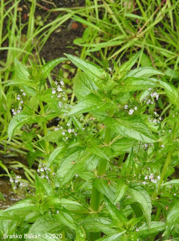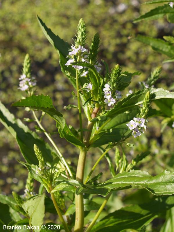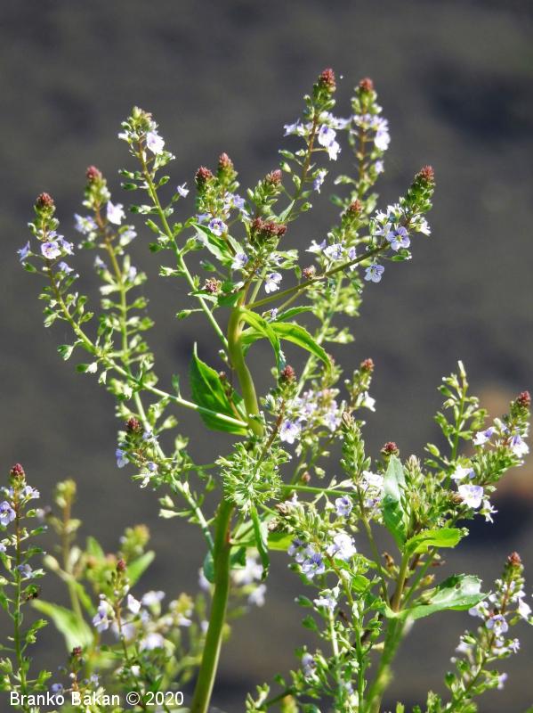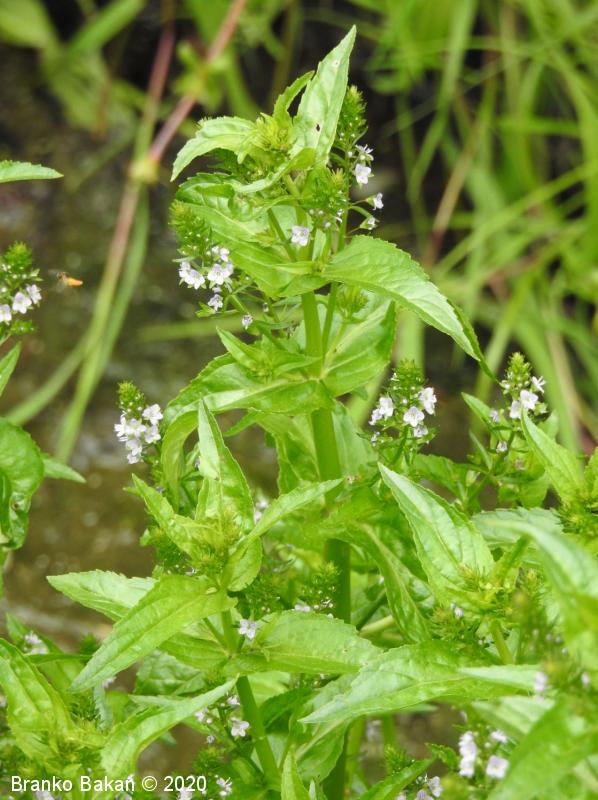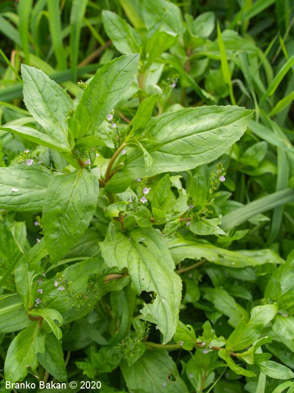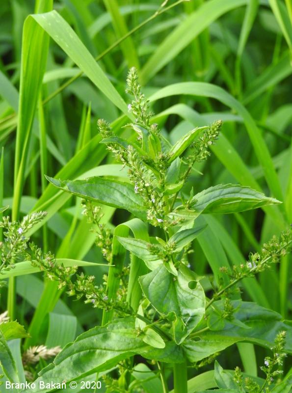 Opis: pokončna ali kipeča enoletnica ali trajnica, ki pogosto uspeva v vodi. Steblo je golo, robato, votlo, pogosto rdečkasto. Listi so nasprotno razvrščeni, podolgasto jajčasti ali ozko suličasti, sedeči, skoraj obdajajo steblo, goli, po robu plitvo, topo nazobčani, na vrhu topo koničasti. Cvetovi združeni v obstranska, klasasta, dolgopecljata socvetja, bledovijoličasti ali modrovijoličasti, s temnimi žilami, 4-števni. Plod je gola, eliptična glavica, tako dolg ali krajši od ozkojajčastih, golih čašnih listov. Ob zrelosti plodovi štrlijo večinoma pokončno navzgor, njihovi peclji so mnogo daljši kot podporni listi.