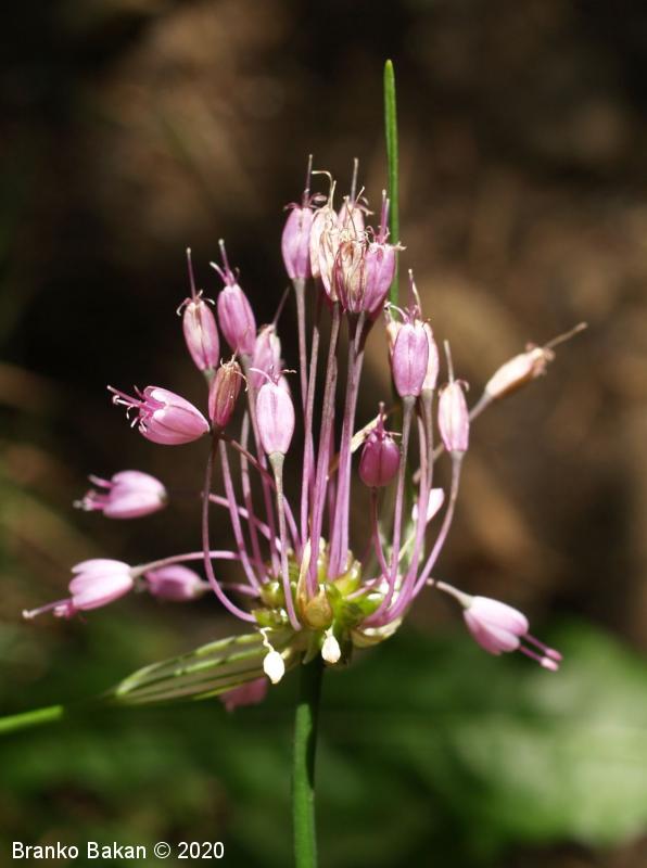 Opis: pokončna trajnica z okroglo čebulico na kateri so vlaknati ostanki starih listov. Steblo okroglo, olistano nekje do polovice, votlo. Listi črtalasti, goli, z dolgo listno nožnico se iztezajo po steblu, ploski, po spodnji strani gredljati. Cvetovi so dolgopecljati (peclji nad 2 cm dolgi, vsaj nekateri navzdol ukrivljeni), rožnati ali škrlatni, redkeje belkasti. Pri tipski podvrsti carinatum so v socvetju prisotni tudi zarodni brstiči (čebulicam podobne tvorbe za vegetativno razmnoževanje), pri podvrsti pulchellum zarodnih brstičev ni. Prašniki štrlijo daleč iz cvetov, prašnične niti tanke, brez stranskih priveskov. Podporna lista socvetja sta dva, suhokožnata, otko podaljšana, mnogo daljša od socvetja.