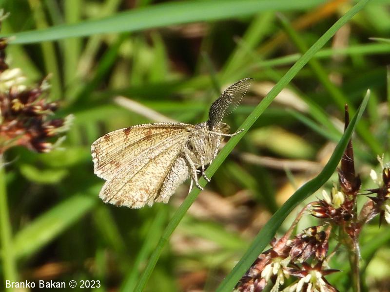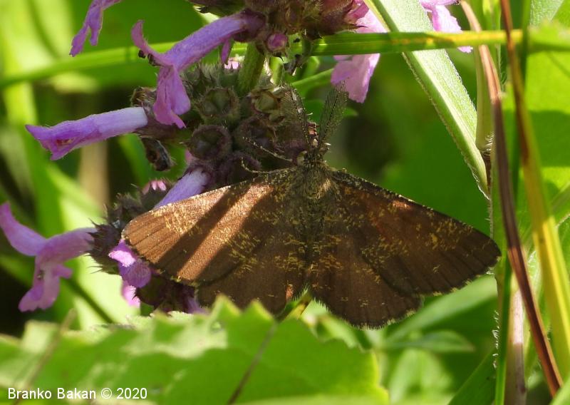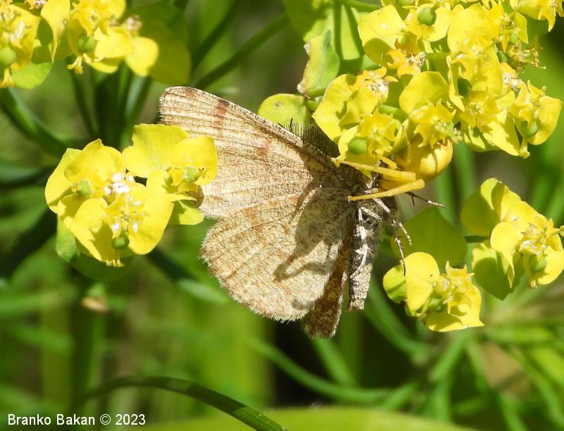 Obnašanje in razvoj: odrasli pogosto letajo čez dan in se zadržujejo med travo, obiskujejo tudi cvetlice. Opazujemo jih lahko od maja do junija, občasno tudi še avgusta. Gosenice so dokaj variabilne, zelenkaste ali sivorjave, najdemo jih na nekaterih vresovkah (Ericaceae) in metuljnicah (Fabaceae). V nevarnosti otrpnejo in posnemajo vejico (mimikrija!).