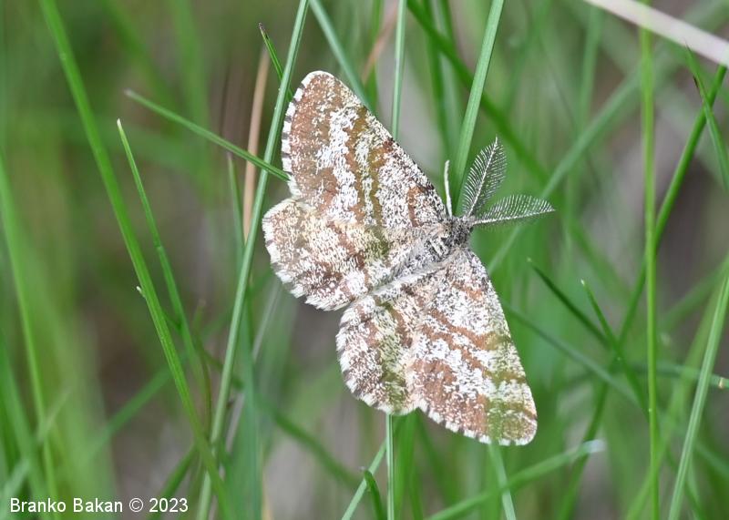 Podobne vrste: stepski deteljar (Heliomata glarearia) - travniški mrežarček (Chiasmia clathrata) - rumeni panterček (Pseudopanthera macularia).