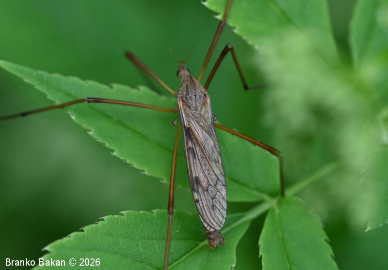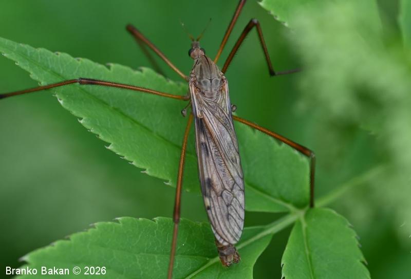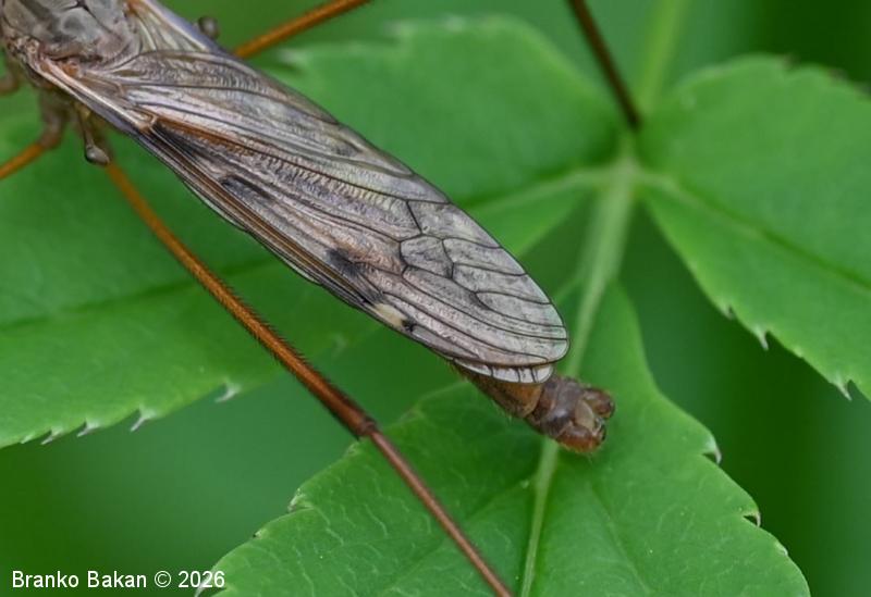 Odrasli osebki: zelo veliki dvokrilci, ki spominjajo na košeninarje (Tipula), z dolgimi nogami in rjavo obarvanostjo. Samec in samica se v glavnem razlikujeta po kopulacijskem organu na koncu zadka, pri samici je to koničasta, rdečerjava leglica, pri samcu je ta del zadka nekoliko odebeljen in opremljen s kleščicami. Glava je drobna, ozko podaljšana, z velikimi, temnimi očmi, tipalnice so kratke, nitaste, rumene. Oprsje je sivo, v osrednjem delu s široko sivkasto progo v kateri se nahaja temnejša, ožja črta. Krila so prosojno rjavkasta, s temnejšimi in svetlejšimi lisami in pikami, pterostigma je belkasta. Zadek je ozek, podolgovat, rumeno- ali rdečerjav. Noge so zelo dolge (do 1.5-krat tako dolge kot telo), rumenorjave, v kolenčnih delih nekoliko zatemnjene, gosto porasle s kratkimi temnimi dlačicami.
