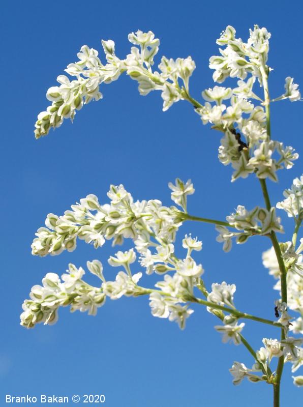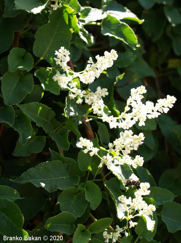 Opis: olesenela ovijalka, vzpenjalka ali plazeča rastlina. Listi so v obrisu srčastopuščičasti do trikotni, koničasto podaljšani, premenjalno razvrščeni, celorobi. Cvetovi so združeni v gostocvetna, previsna, do 15 cm dolga, latasto razrasla socvetja, s snežnobelim do rahlo rožnatim ali zelenkastim perigonom (cvetnim odevalom). Plod je orešek.