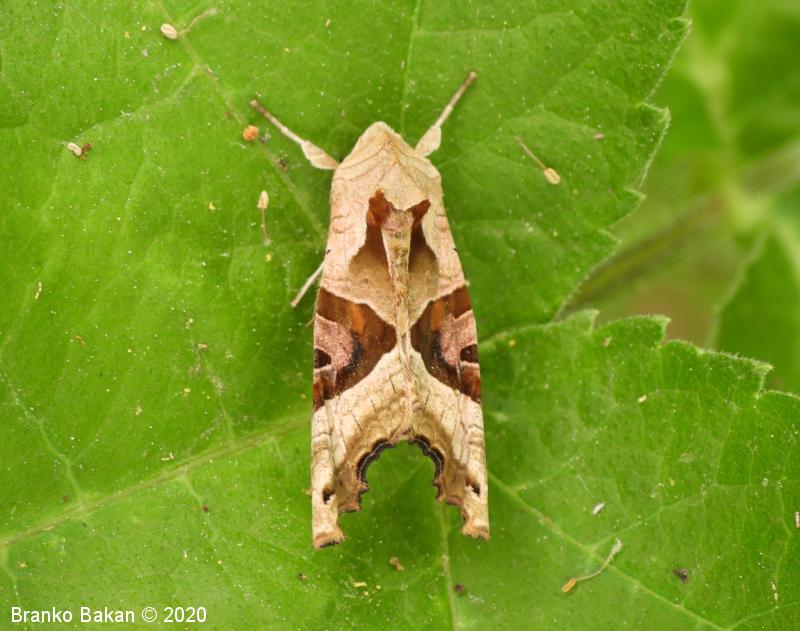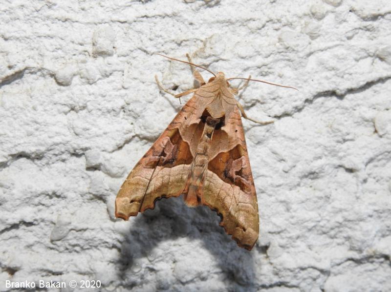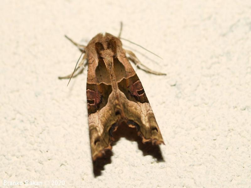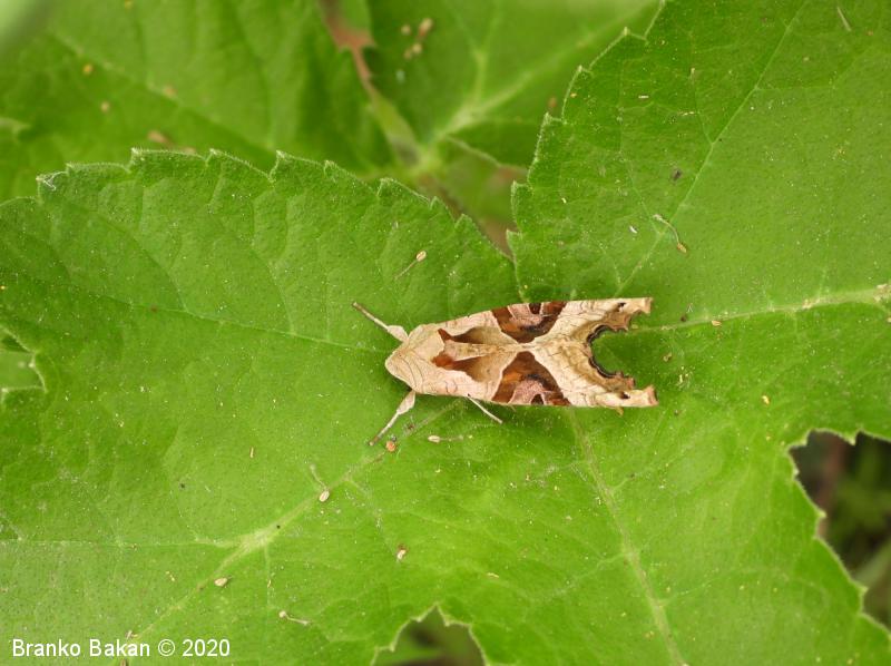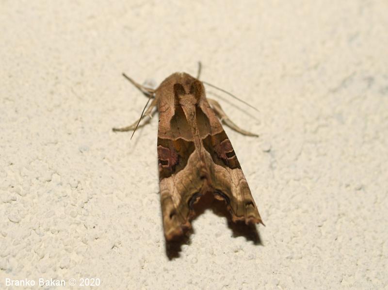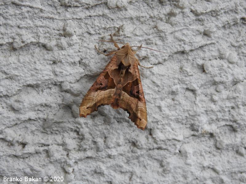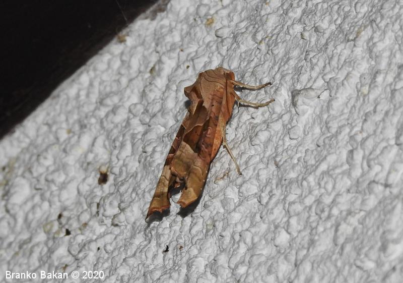 Obnašanje in razvoj: metulji so selivci, pojavljajo se od maja vse do oktobra, zelo pogosto v dveh generacijah. Zaradi varovalne obarvanosti jih je težko opaziti, če počivajo na lubju dreves. Gosenice so sprva rumenozelene, v kasnejših razvojnih stadijih postanejo po zgornji strani rdečerjave, po bokih svetlorjave, z značilnim V-vzorcem po hrbtišču. Hranijo se z različnimi zelnatimi rastlinami.
