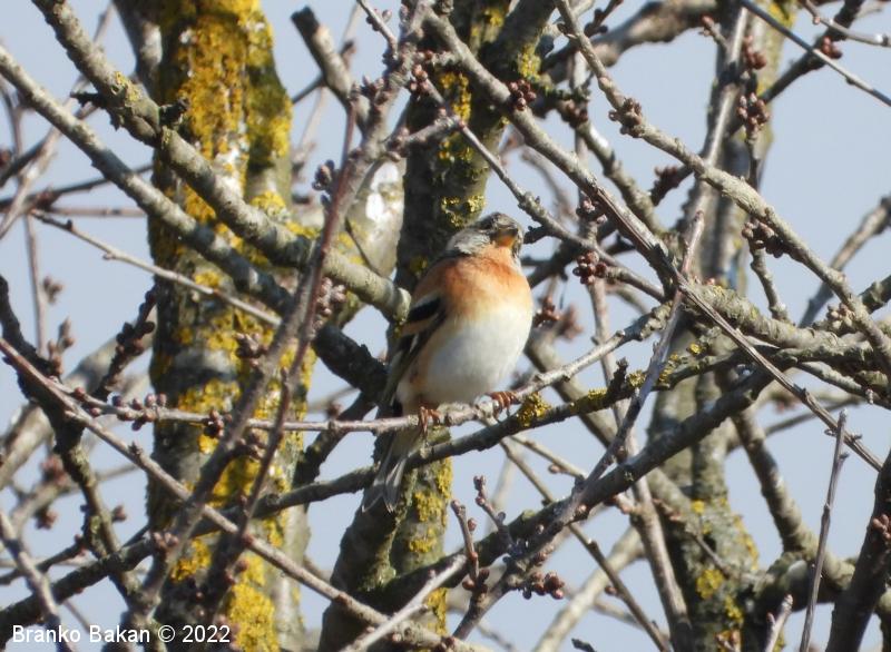 Samec: v gnezditveni sezoni je po glavi bleščeče črn, prsi in grlo ima oranžno obarvane. Kljun je precej krepak, temen. Peruti so temne s prečnima belima pasovoma v ramenskem delu, delno tudi rjavkasto obarvana. Trebuh in podrepni del sta bela s temnimi pikami ob bokih. Rep je temen, dokaj kratek. V zimskem času črnina zbledi, zato je po glavi in hrbtu progast in rjavkast do sivkast, kljun se na bazi rumenkasto obarva.