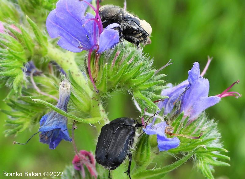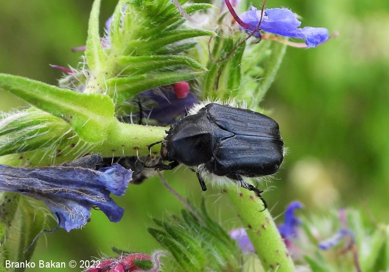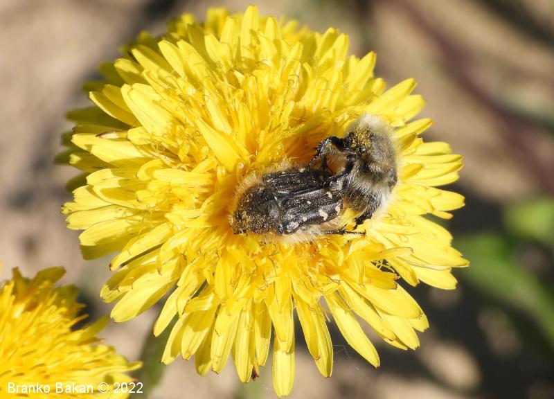 Obnašanje in razvoj: odrasli se pojavijo že v aprilu, pogosto v velikem številu. Hranijo se s pelodom (najpogosteje na regratu), obžirajo pa tudi cvetove, zato lahko naredijo večjo škodo na sadnem drevju. Ličinke (ogrci) živijo v zemlji, kjer se hranijo z odmrlo rastlinsko hrano. Po dveh mesecih se zabubijo in po dveh tednih se preobrazijo v odrasle živali, ki prezimijo v talni komori do naslednje pomladi.