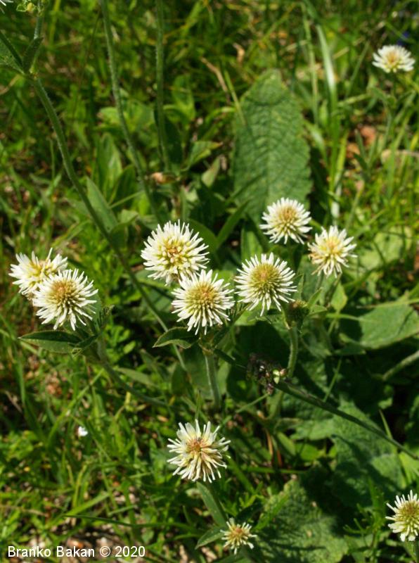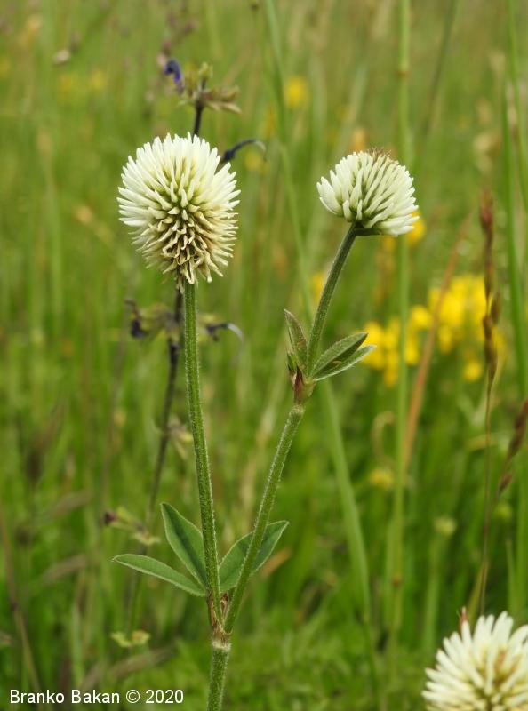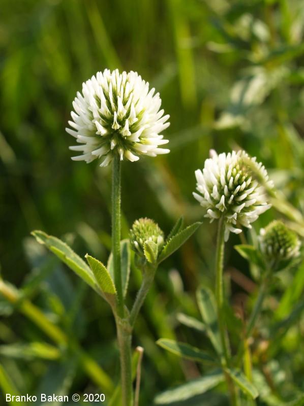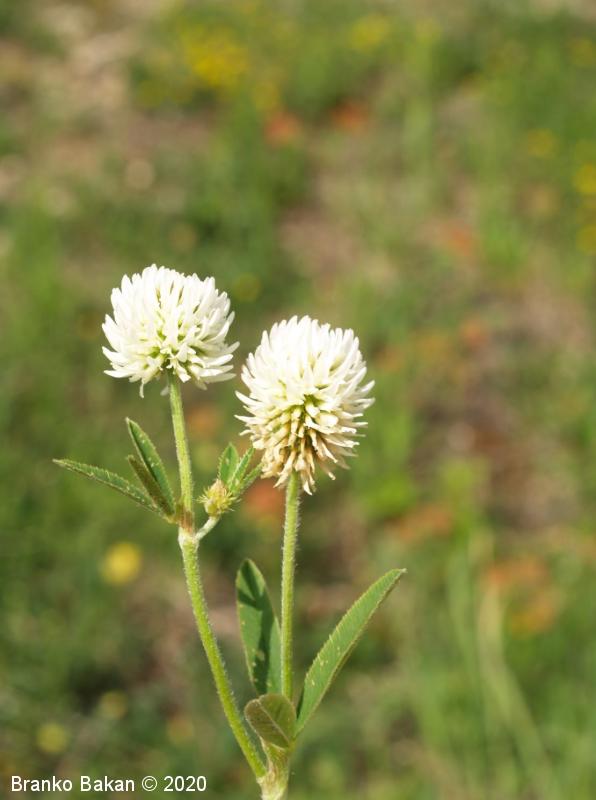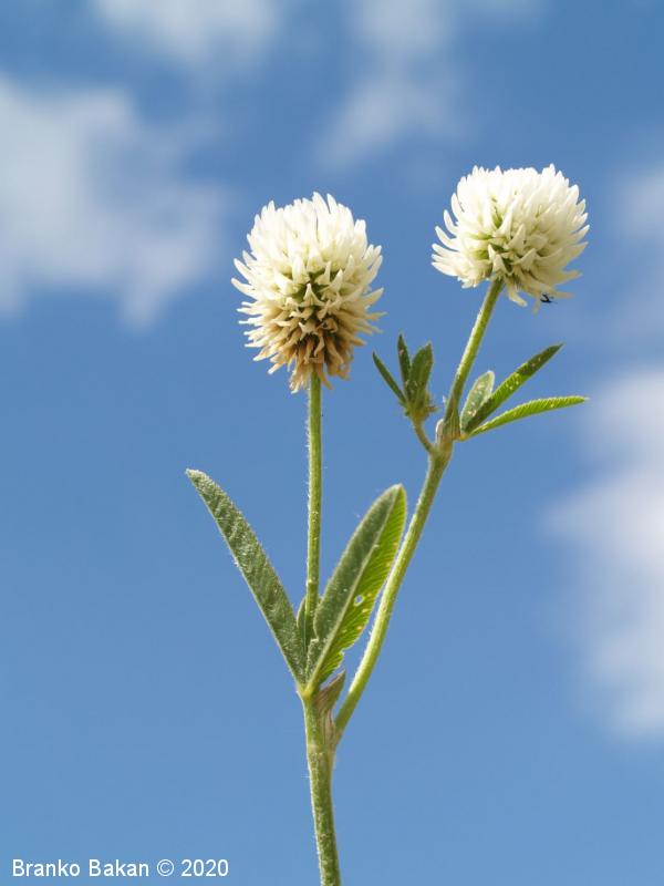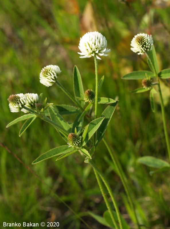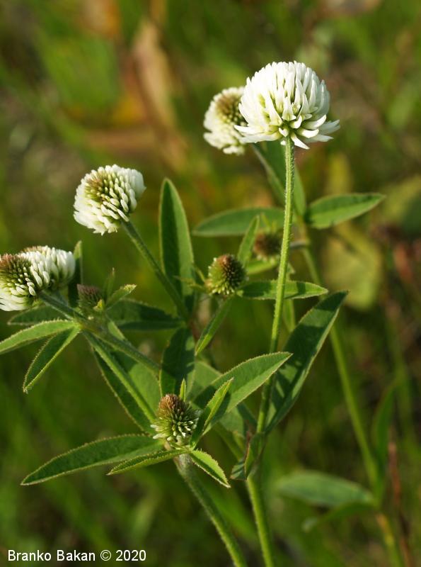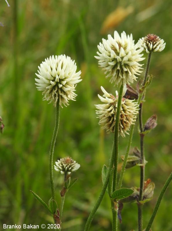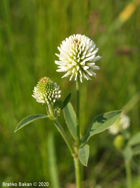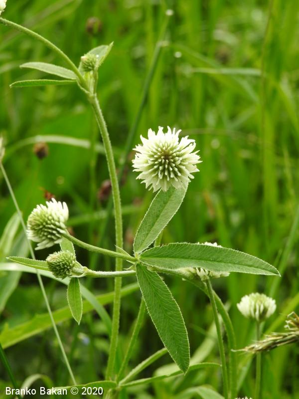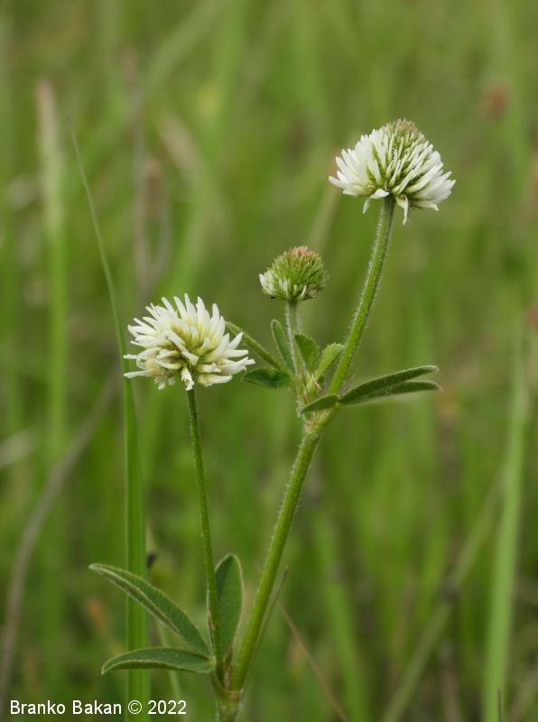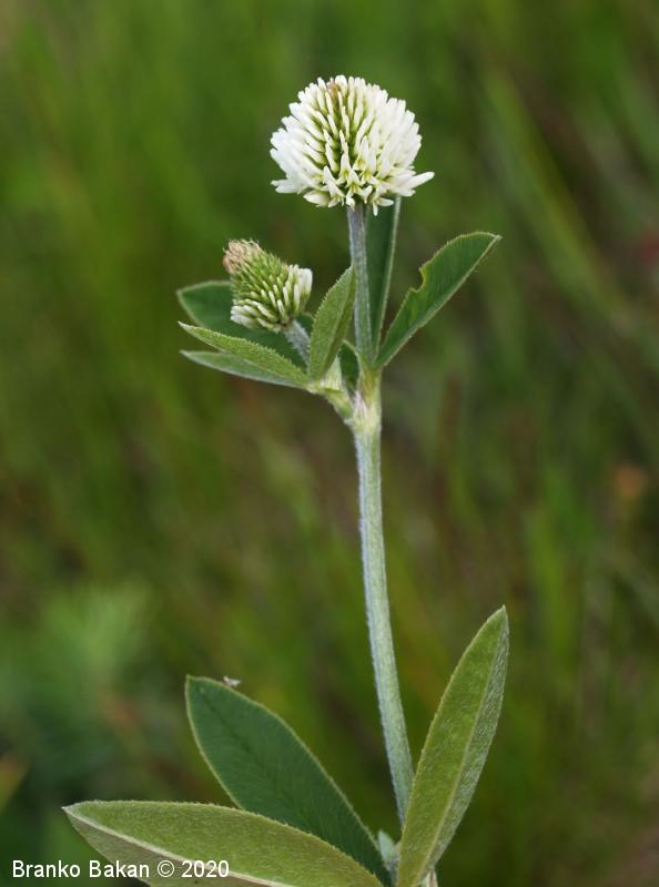 Opis: pokončna, štrlečedlakava trajnica. Listi so trojnati, dolgopecljati, sestavljeni iz podolgasto eliptičnih ali jajčastih segmentov, ki so po robu drobno nazobčani, po spodnji strani prileglodlakavi. Cvetovi so beli do bledorumenkasti, drobni, združeni v dolgopecljata, glavičasta socvetja, po odcvetu porjavijo. Čašni listi so zrasli v kratko cev, na vrhu podaljšani v ozkočrtalaste, enako dolge roglje, dlakavi. Plod je strok, ki ostane obdan z odcvetelimi venčnimi listi.