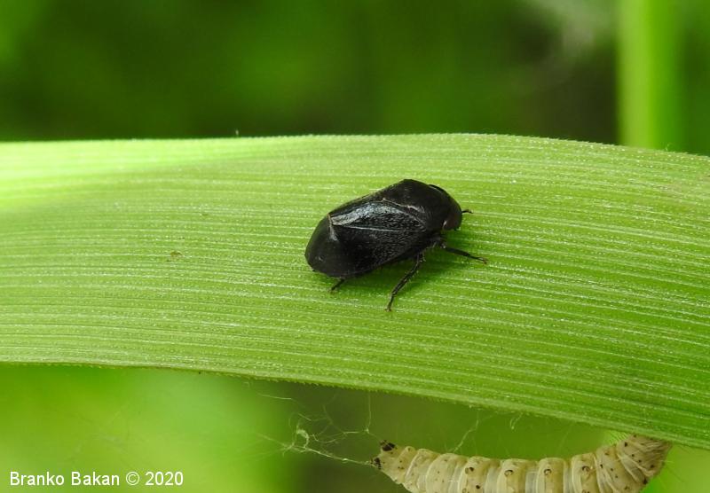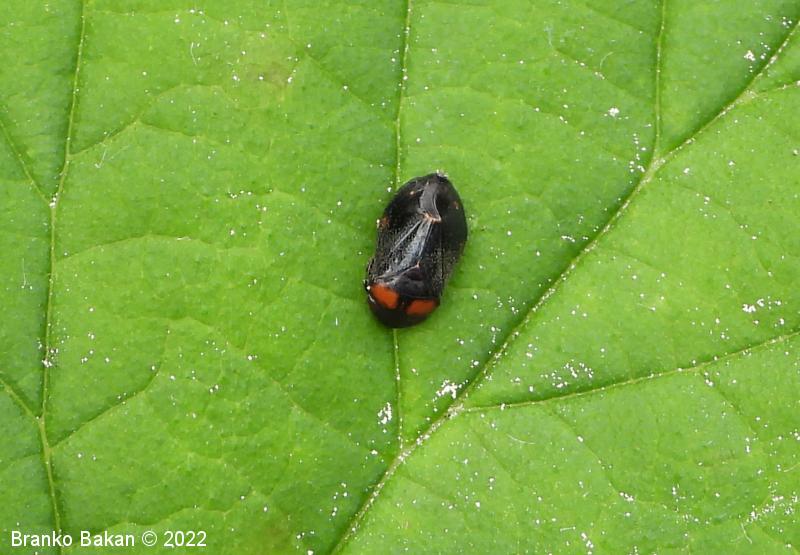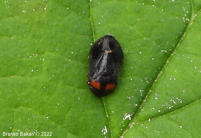 Obnašanje in razvoj: odrasli osebki so aktivni od aprila do julija. Po obliki nekoliko spominjajo na ptičji iztrebek (mimikrija!), zato jih je težko prepoznati tudi na izpostavljenih mestih, kot so listi trav ali grmovnic. Hranijo se z rastlinskimi sokovi, predvsem na topolih (Populus spp.) in hrastih (Quercus spp.). V nevarnosti raje skočijo vstran, kot pa da bi poleteli. Prezimijo v stadiju ličink, ki so rjavkaste in brez kril.