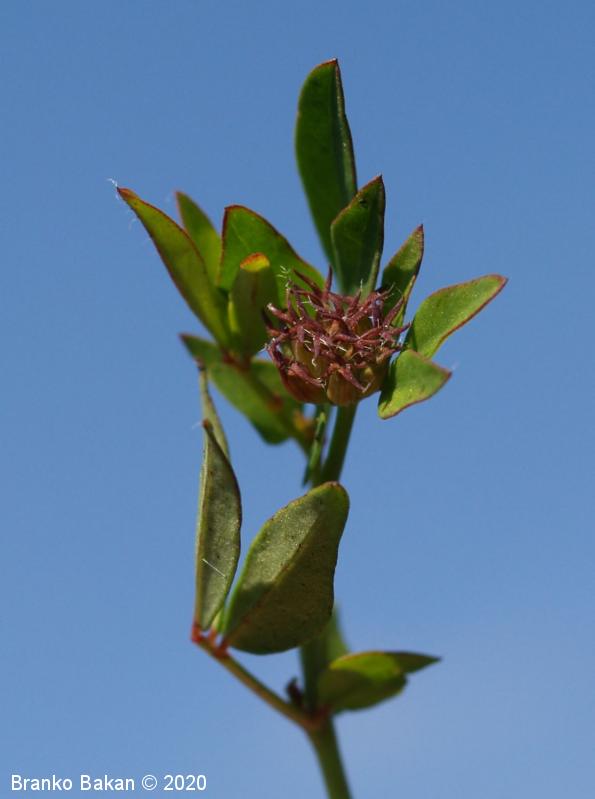 Opis: pokončna, dokaj razrasla trajnica s podzemnimi pritlikami. Steblo skoraj okroglo, votlo (!), golo. Listi trojnati, sestavljeni iz jajčastosuličastih lističev, ki so goli. Prilista sta precej velika, podobna listnim segemntom (zato listi navidez 5-delni). Cvetovi so združeni v dolgopecljata, malocvetna, glavičasta socvetja, krožno razporejeni, pogosto rdečkasto nadahnjeni. Čašni listi zrasli v kratko , golo čašno cev, podaljšani v ozke roglje, ki so pred cvetenjem nazaj ukrivljeni in štrlečedlakavi. Plod je raven strok, ki je sprva rdečkasto nadahnjen, gol.