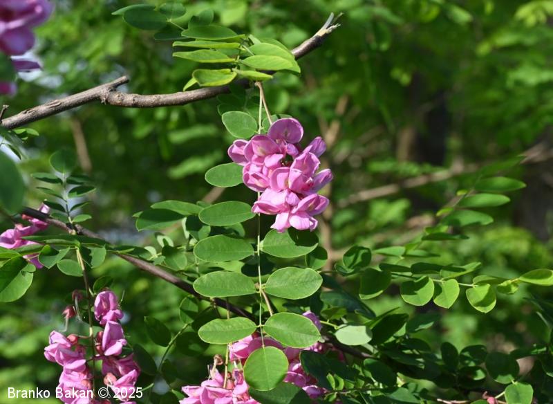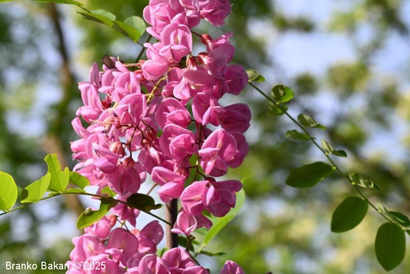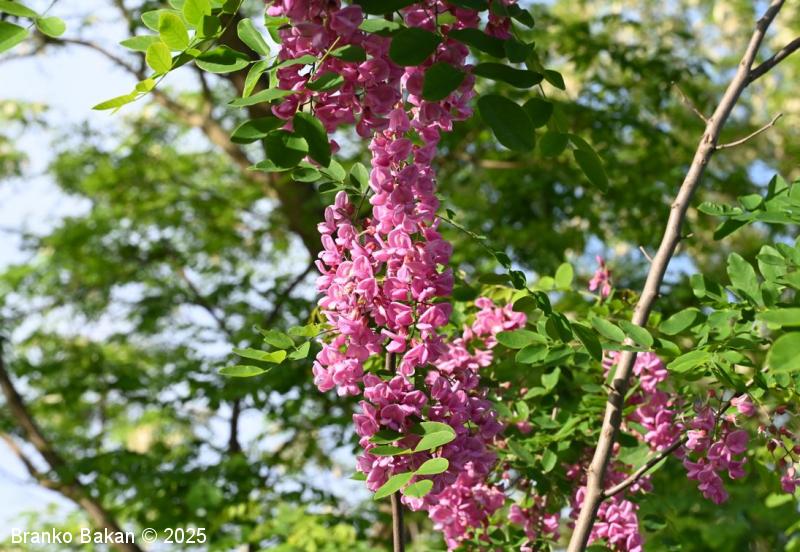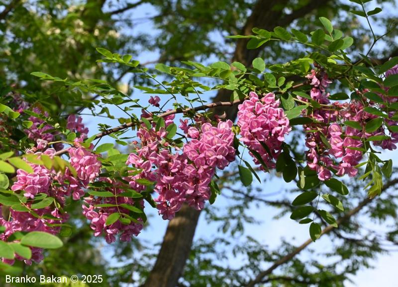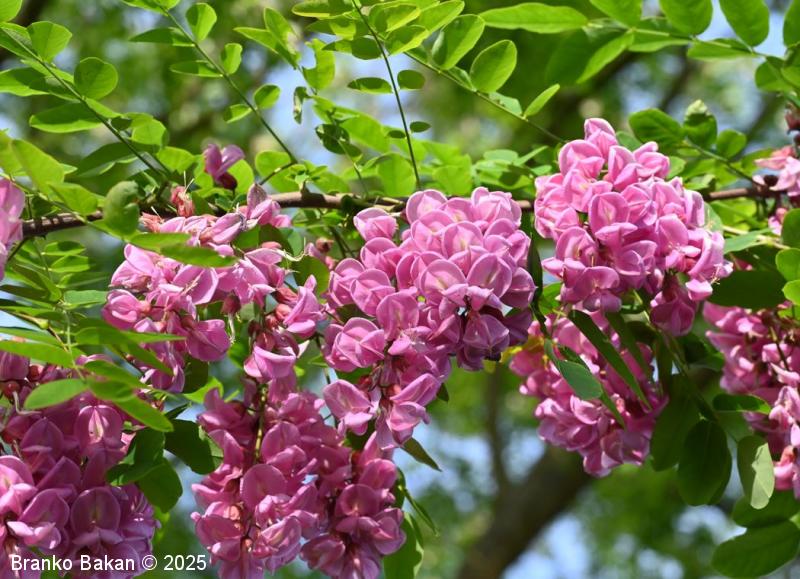 Obstajajo tudi sorte oz. križanci z rožnatimi ali škrlatnordečimi cvetovi (npr. Robinia x margaretta).