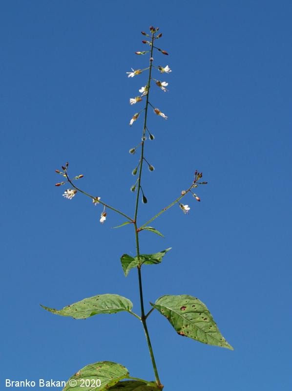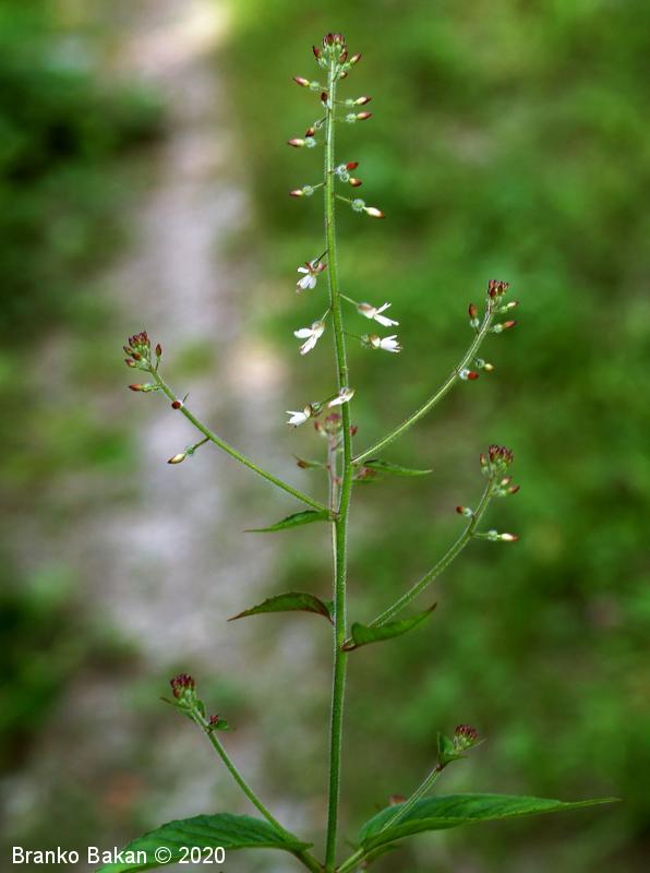 Opis: pokončna, nerazrasla trajnica s podzemnimi pritlikami (stoloni). Listi so enostavni, nasprotno razvrščeni, jajčastosuličasti, po robu neenakomerno nazobčani, pri dnu zaokroženi ali klinasto podaljšani, zgornji stebelni listi so sedeči, spodnji dolgopecljati. Cvetovi so drobni, belkasti ali rožnati, razporejeni v grozdasto podaljšanem ovršnem socvetju, 2-števni. Čašna lista sta pogosto rdečkasta. Plod je dvosemenska glavica, pokrit s kavljastimi ščetinami.