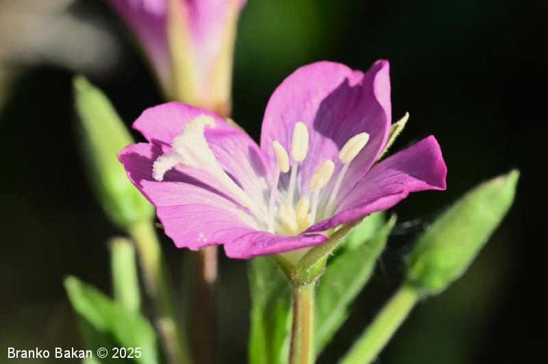 Opis: pokončna trajnica s pritlikami. Steblo je v prerezu okroglo, gosto štrleče kratkodlakavo, v zgornjem delu pogosto razvejano. Listi so podolgasto suličasti, enostavni, večinoma nasprotno razvrščeni (v zgornjem delu stebla premenjalni), sedeči ali z nakazanim pecljem (delno objemajo steblo ali se iztezajo po steblu), po robu nazobčani. Cvetovi so škrlatni, nad 15 mm široki, 4-števni, zvezdasto razprti, venčni listi so na vrhu plitvo izdolbeni. Brazda pestiča je na vrhu 4-delna. Plodnica je ozka, zelo dolga (spominja na cvetni pecelj), gosto dlakava (tudi žlezaste dlake so prisotne), ob zrelosti se razpre po šivih, semena so obdana s kosmičastimi dlakami, ki jih širi veter.