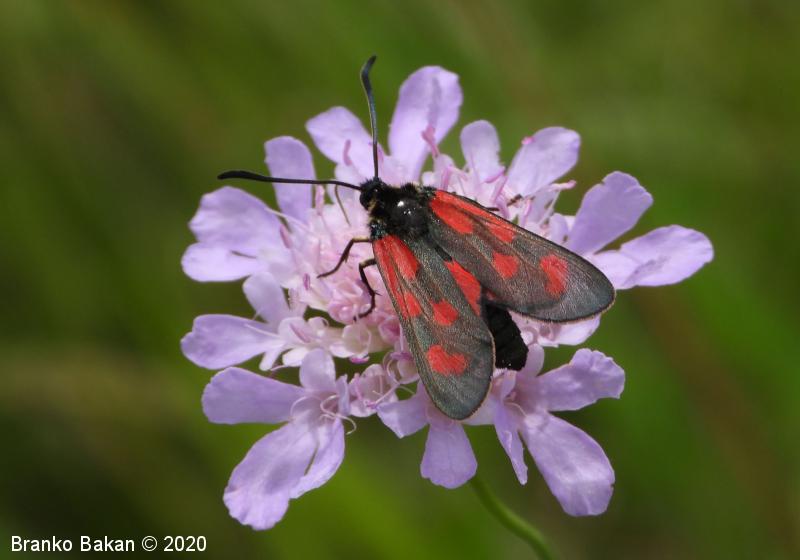 Obnašanje in razvoj: odrasli so aktivni čez dan, predvsem v sončnih in toplih dneh v juniju in juliju, ko se okorno spreletavajo med cvetovi. Kot že njihova opozorilna obarvanost nakazuje, so strupeni. Gosenice so rumene ali zelenkaste, s serijo črnih pik na obeh straneh hrbtišča, raztreseno ščetinaste, hranijo se v glavnem z nokotami (Lotus spp.), podkvicami (Hippocrepis spp.) in sekirkami (Securigera spp.).