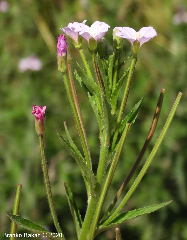 Opis: pokončna trajnica. Steblo je v prerezu okroglo, gosto štrleče mehkodlakavo (dlake so belkaste ali sivkaste), v zgornjem delu pogosto razvejano. Listi so ozkosuličasti, enostavni, večinoma premenjalno razvrščeni (v spodnjem delu stebla nasprotni), sedeči (lahko se rahlo iztezajo po steblu), po robu grobo nazobčani. Cvetovi so bledo rožnati, okrog 15 mm široki, 4-števni, zvezdasto razprti, venčni listi so globoko preklani. Brazda pestiča je na vrhu 4-delna. Plodnica je ozka, zelo dolga (spominja na cvetni pecelj), gosto mehkodlakava (prisotne tudi žlezaste dlake), ob zrelosti se razpre po šivih. Semena imajo na vrhu šop kosmičastih dlak, ki jih širi veter.