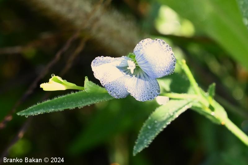 Opis: pokončna enoletnica, redkeje dvoletnica, z enostavnim ali razraslim steblom. Listi so premenjalno razvrščeni, jajčasti do podolgasto suličasti, na vrhu koničasti, celorobi, sedeči. Cvetovi so sinjemodri, dolgopecljati, posamični ali v rahlih pakobulih, 15-25 mm široki, s temnimi žilami. Čašni listi so jajčasti, na vrhu koničasti, po robu brez žleznih laskov. Plod je glavica.