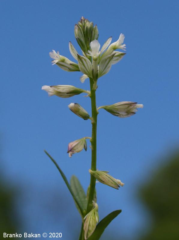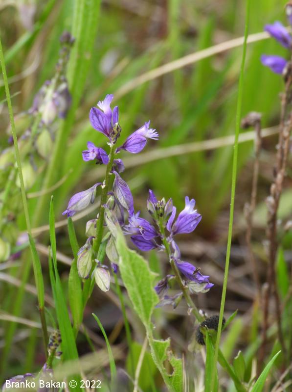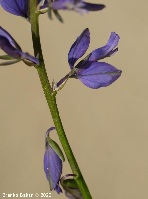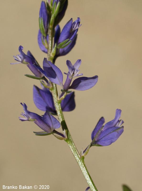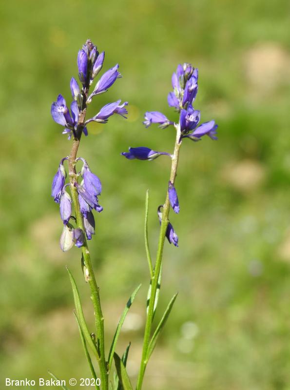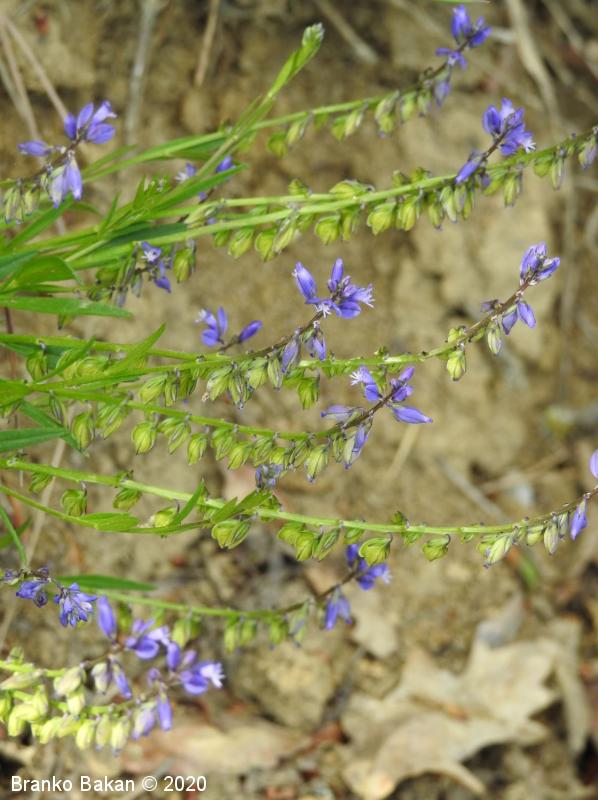 Opis: grmičasta zelnata trajnica, z rozetasto razraslim, kipečim ali pokončnim steblom, ki lahko delno oleseni. Listi so premenjalno razvrščeni, črtalasti, le spodnji listi včasih jajčasti (manjši od zgornjih stebelnih listov), celorobi, z vidno osrednjo žilo. Cvetovi so somerni, zgoščeni v podolgasta grozdasta socvetja, večinoma temnomodri ali modrovijolični, redkeje škrlatni ali beli. Venčni listi so med seboj delno zrasli v cev, spodnji so na konici narezljani na belkaste, ozke roglje, mnogo krajši od zgornjih venčnih listov. Čašni listi so sestavljeni iz treh črtalastih čašnih listov in dveh večjih, barvitih, 3-7 mm velikih, mrežasto žilnatih listov (čašni krili), ki po cvetenju postaneta zelena in sta tako velika ali malo večja kot plod. Plod je od strani sploščena, gola glavica.