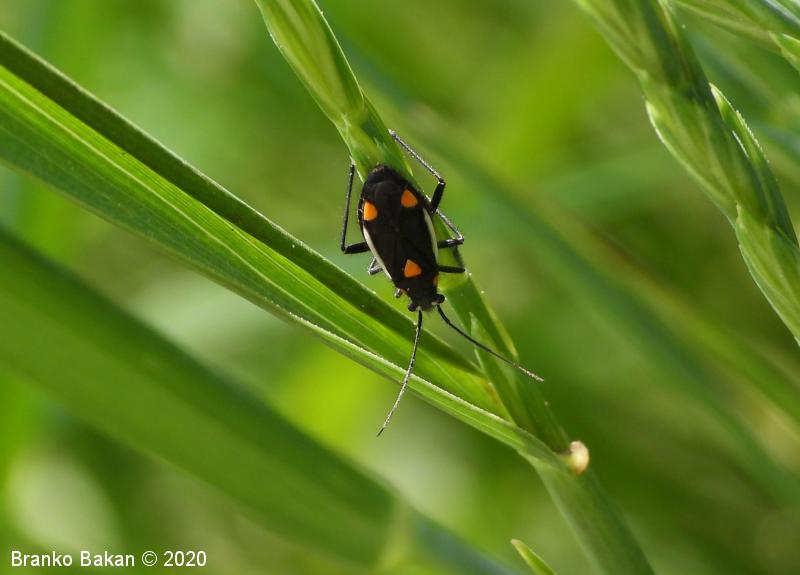 Podobne vrste (*neuveljavljeno ime): rumenoroba krempljarka* (Deraeocoris flavilinea) - temna travniška stenica* (Polymerus nigrita) - tropasasta travniška stenica* (Liocoris tripustulatus).