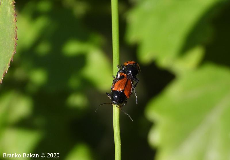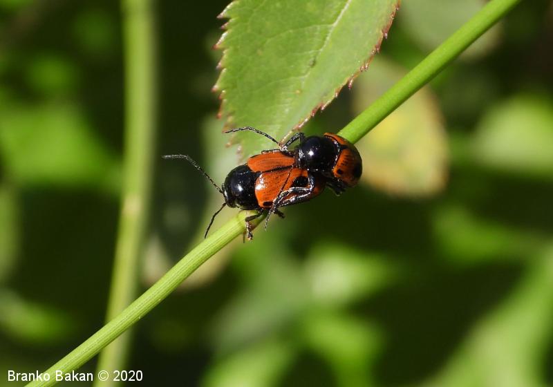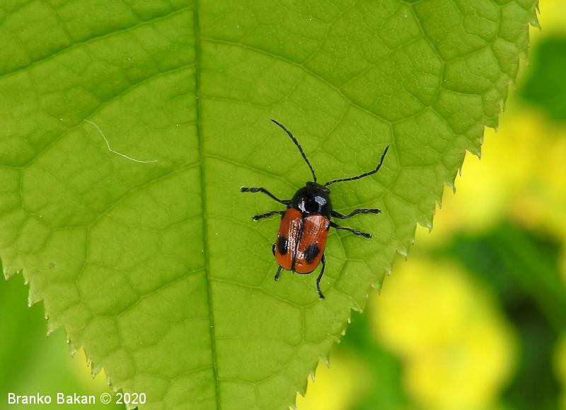 Obnašanje in razvoj: odrasli osebki so aktivni od maja do julija v sončnih dneh, pogosto se zadržujejo na listih vrb in šipkov ali na večjih cvetovih. V nevarnosti lahko izločijo strupeno rumenkasto tekočino. Ličinke se prehranjujejo z listi nekaterih dreves in grmovnic.