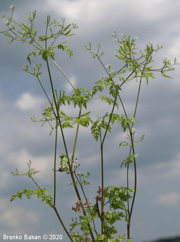 Podobne vrste: oslovska krebuljica (Anthriscus caucalis) - rosničasta krebuljica (Anthriscus fumarioides) - janež (Pimpinella anisum).