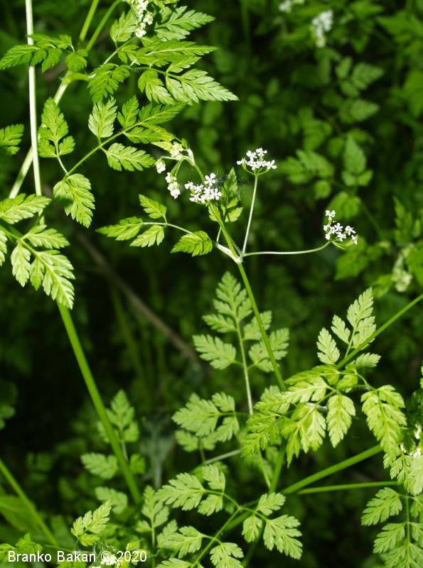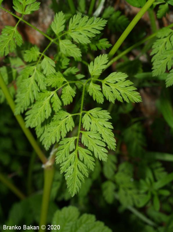 Opis: pokončna, razrasla enoletnica. Steblo je dokaj tanko, pogosto cik-cakasto, gladko, golo. Listi so dolgopecljati (pecelj se poveča v nožnico), z vodoravnim, pogosto kolenčasto upognjenim osrednjim rebrom, pernato sestavljeni iz večjih segmentov, ki so prav tako deljeni. Segmenti zadnjega reda so jajčasti ali pahljačasti, topo plitvo krpati ali nazobčani, goli, zelo nežni. Cvetovi so združeni v ovršne kobule, beli. Ogrinjalo (podporni listi kobula) ni razvito, ogrinjalce (podporni listi kobulčkov) je večlistno, lističi so šilasti, puhastodlakavi, štrleči ali navzdol usmerjeni. Plod (karpofor) razpade na dva ozka plodiča, ki sta gladka, proti vrhu izrazito zožena, gola (podvrsta cerefolium) ali porasla z ravnimi ščetinami (podvrsta longirostris), 7-10 mm velika.