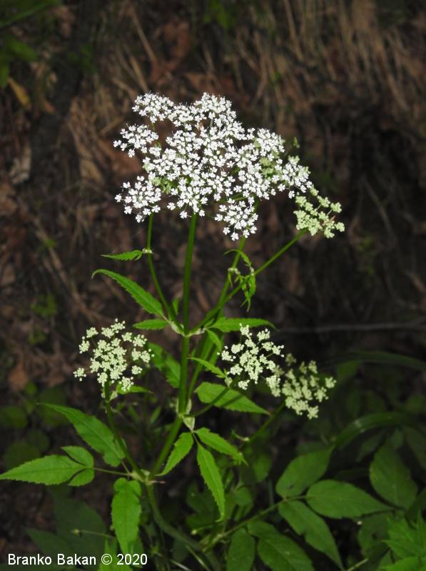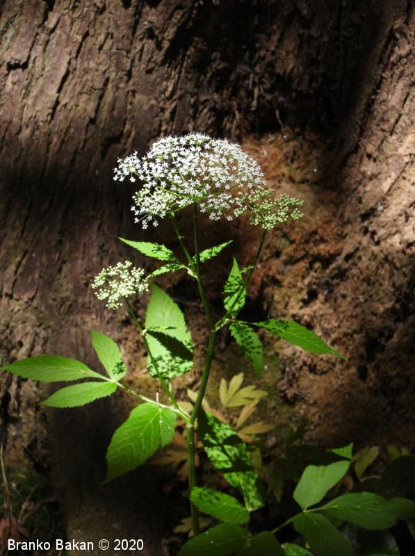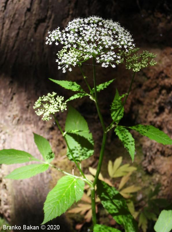 Opis: pokončna trajnica z dolgimi, podzemnimi pritlikami. Steblo je izbrazdano, gladko, votlo. Listi so dolgopecljati (dno peclja je povečano v široko nožnico), pernato sestavljeni iz velikih, jajčastih do jajčastosuličastih, pecljatih segmentov, ki so plitvo krpati ali celi, po robu nazobčani, goli. Cvetovi so združeni v velike kobule, beli, venčni listi so večinoma navznoter ukrivljeni. Ogrinjalo (podporni listi kobula) in ogrinjalce (podporni listi kobulčkov) nista razviti. Plod (karpofor) razpade na dva podolgasta plodiča, ki sta pri vrhu nekoliko zožena, na sredini s široko brazdo, gladka, gola, velika 5-8 mm.